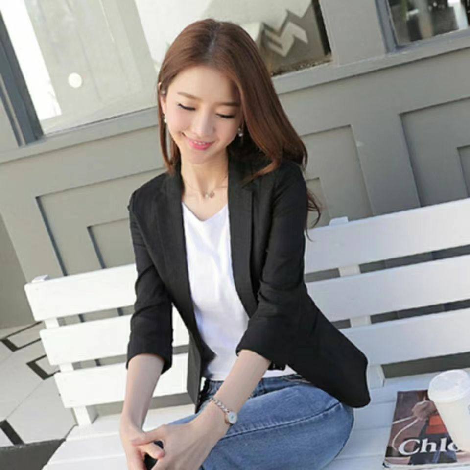 显瘦七分袖 小西装 修身 春夏季 一粒扣休闲棉麻西服外套上衣 女短款