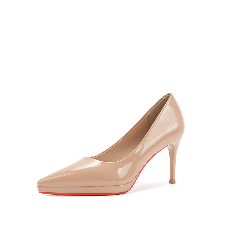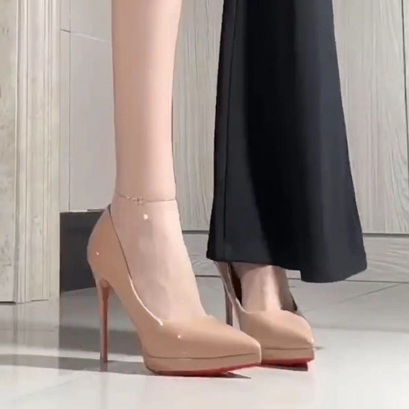 性感职业单鞋 裸色高跟鞋 尖头防水台红底鞋 新款 女细跟2026年春夏季
