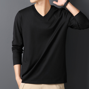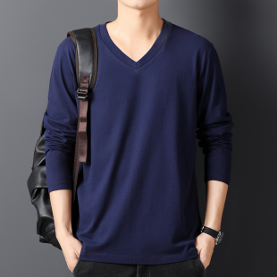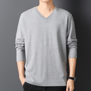 纯棉长袖 上衣服半袖 T恤鸡心领男装 V领宽松打底衫 体恤潮流 韩版 春季