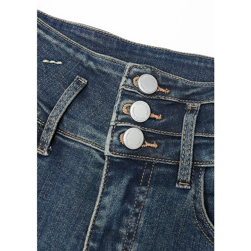 百搭弹力通勤显瘦小脚裤 EF2025秋季 修身 复古高腰牛仔裤 新款