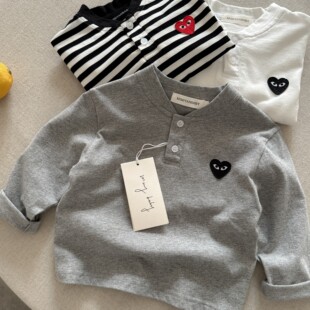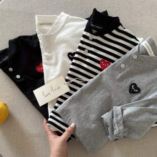 宝宝条纹打底衫 小童爱心上衣中式 女洋气 春季 儿童纯色T恤男童长袖