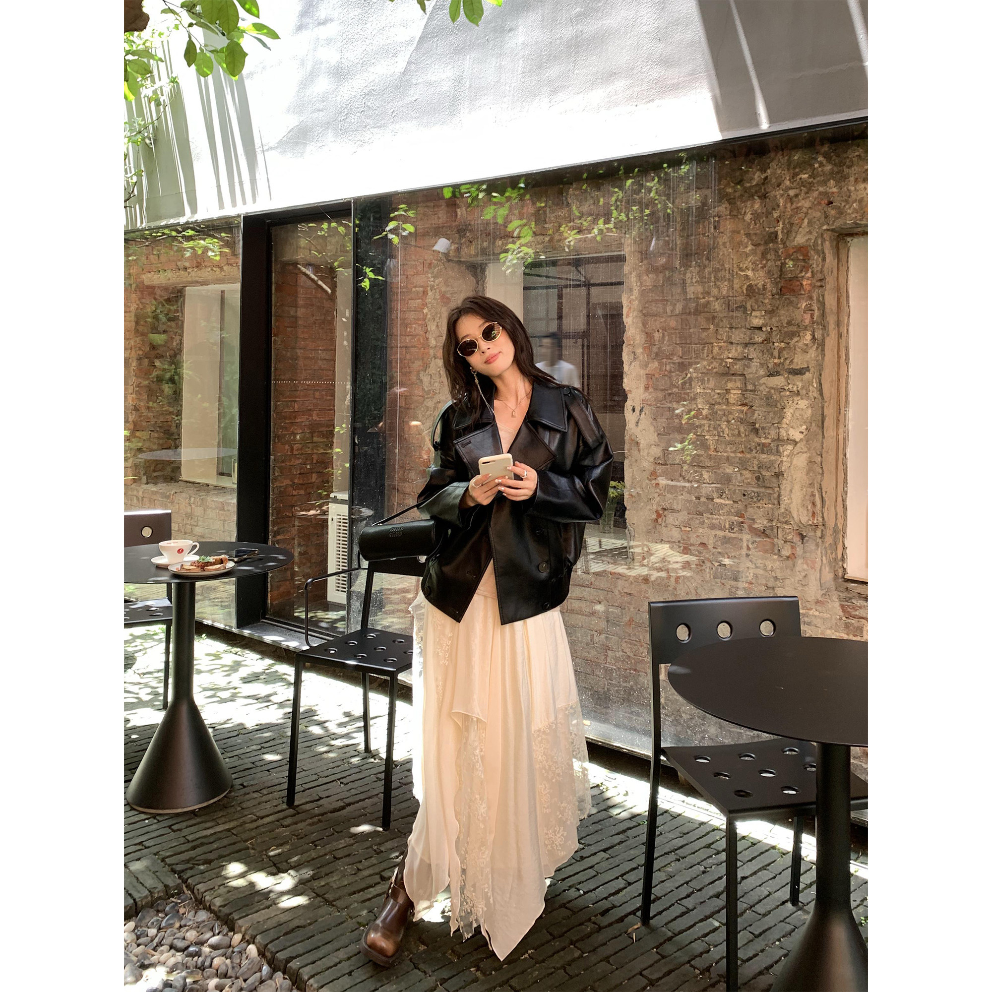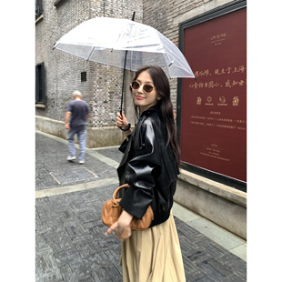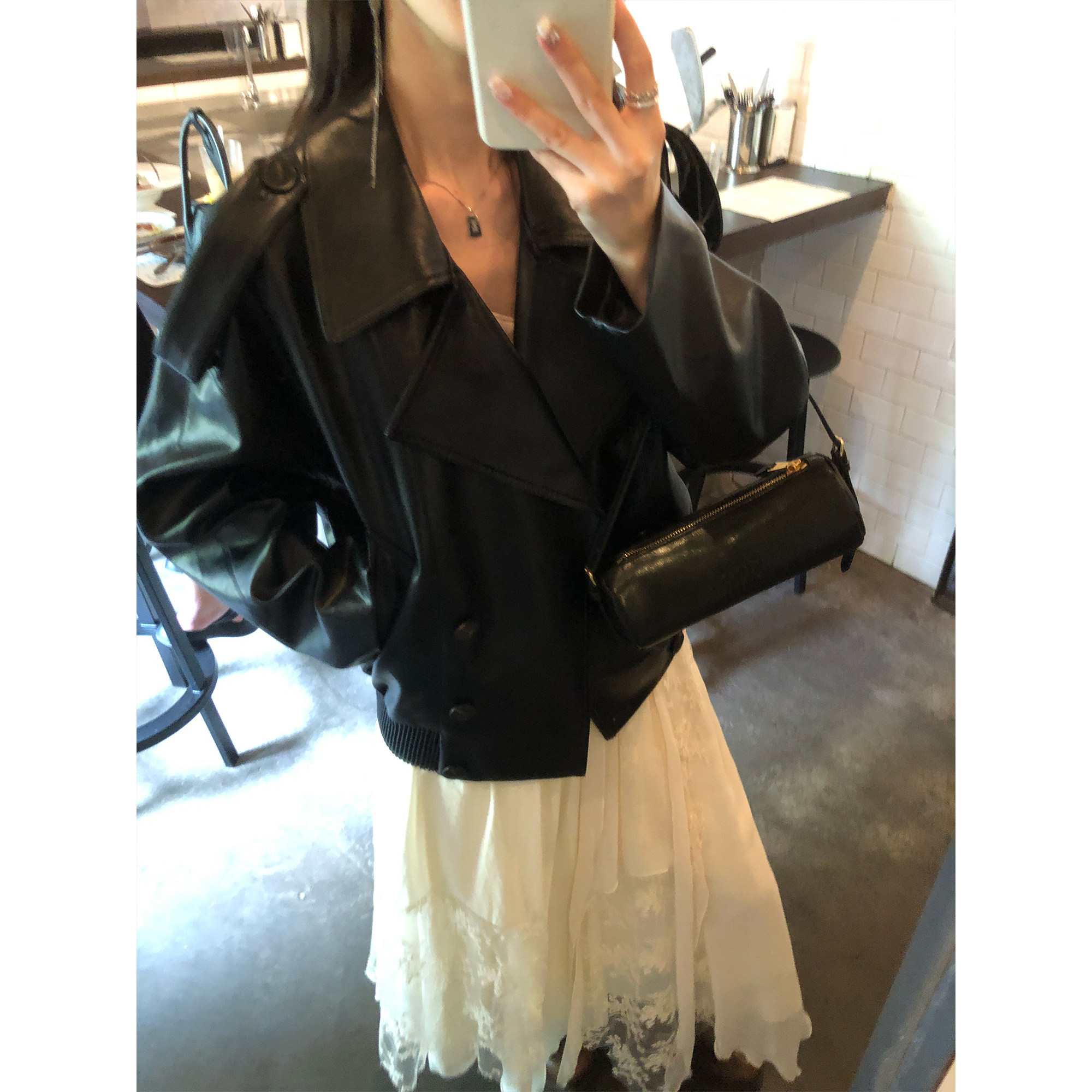 PU皮衣外套女设计感翻领短款 机车日记 夹克 现货7折 pusumede