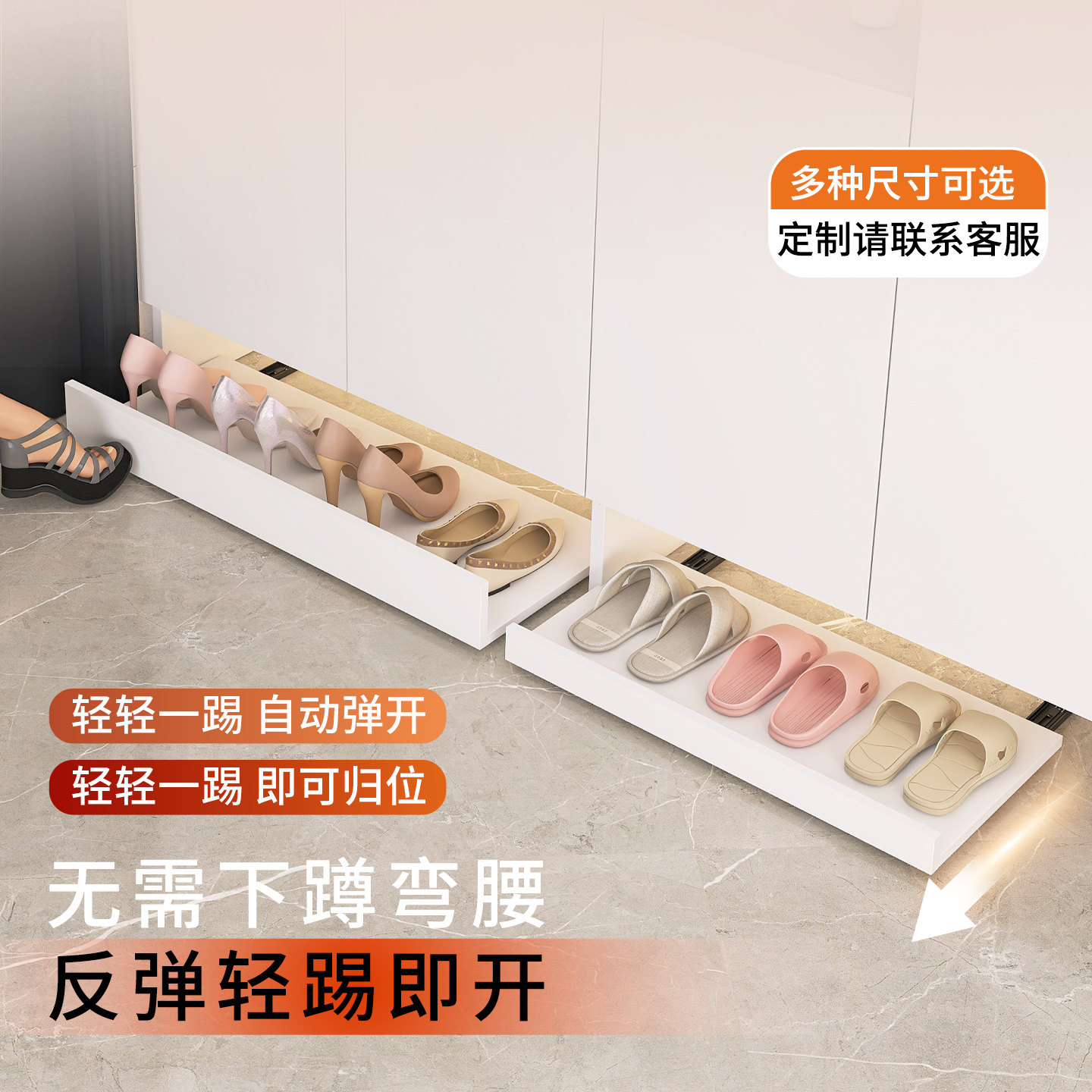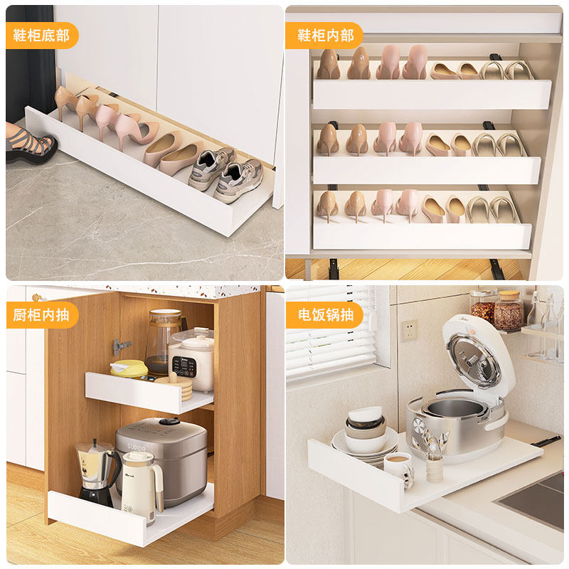 架 板柜子下方收纳滑轨抽拉托盘鞋 鞋 柜底部踢脚抽玄关下面移动换鞋