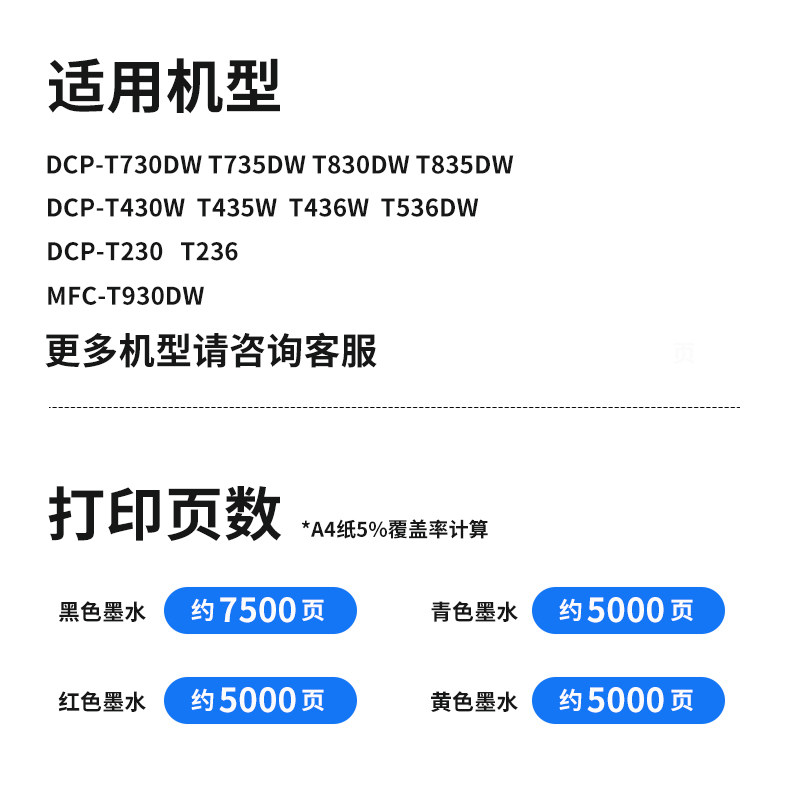 T436W 735DW打印清晰堵头包赔 墨水236 730 T536dw 439 T435W 430 238 CMY打印机四色原装 适用兄弟BTD100BK
