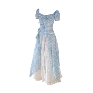 胖MM遮肉格纹连衣裙半身裙两件套女 新款 韩系减龄绝美裙子套装 夏季