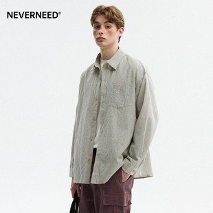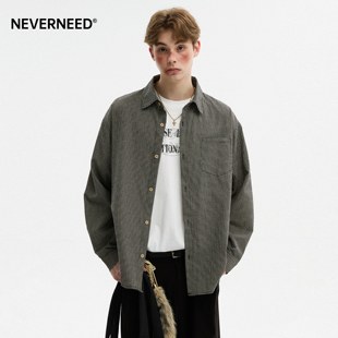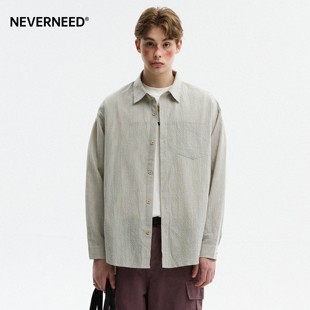 美式 男秋季 潮牌休闲情侣衬衣 衬衫 NEVERNEED泡泡纱肌理感格子长袖