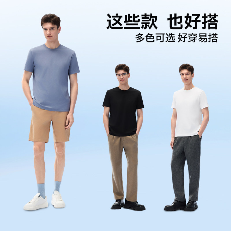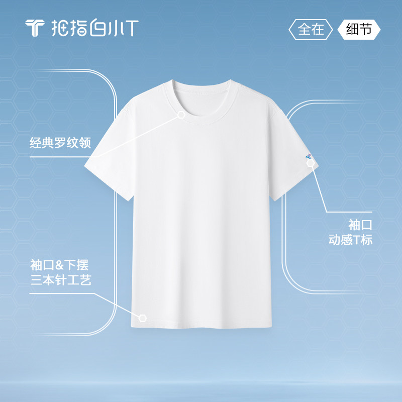 男士 T恤圆领纯色体恤打底衫 上衣女士 全棉短袖 拇指白小T26春夏新款