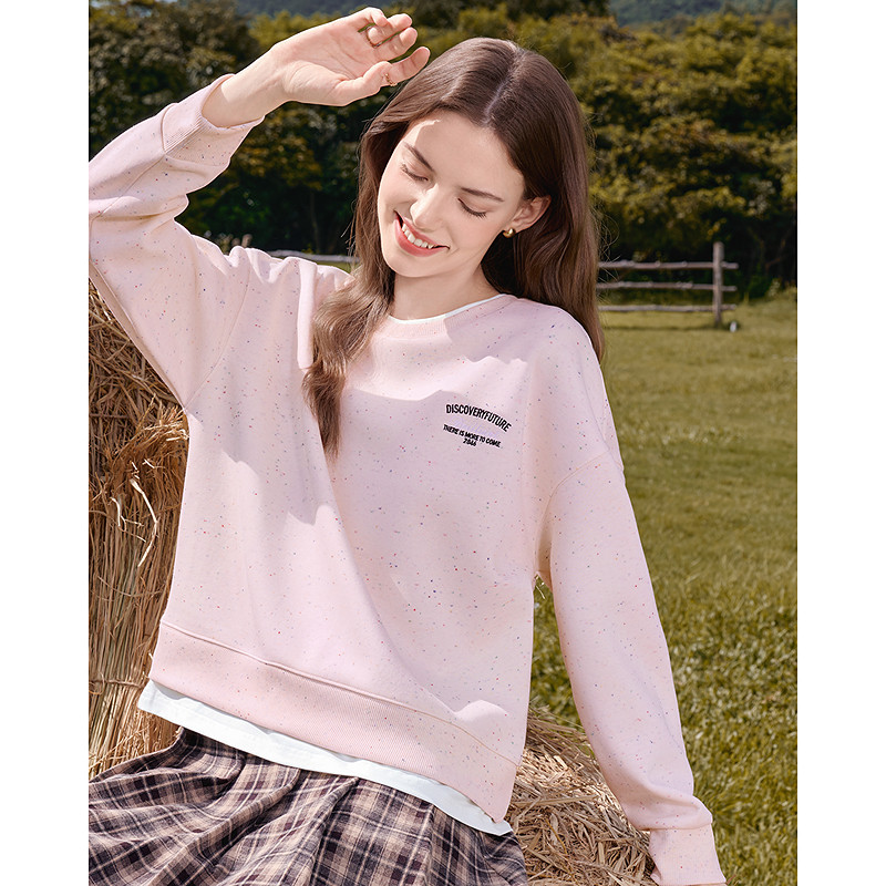 宽松上衣 新款 betu百图法式 慵懒风彩色点点卫衣女套头2026年春季
