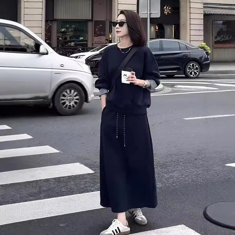 气质遮肉显瘦套头卫衣a字裙两件套 春秋300斤胖mm时尚 大码 休闲套装