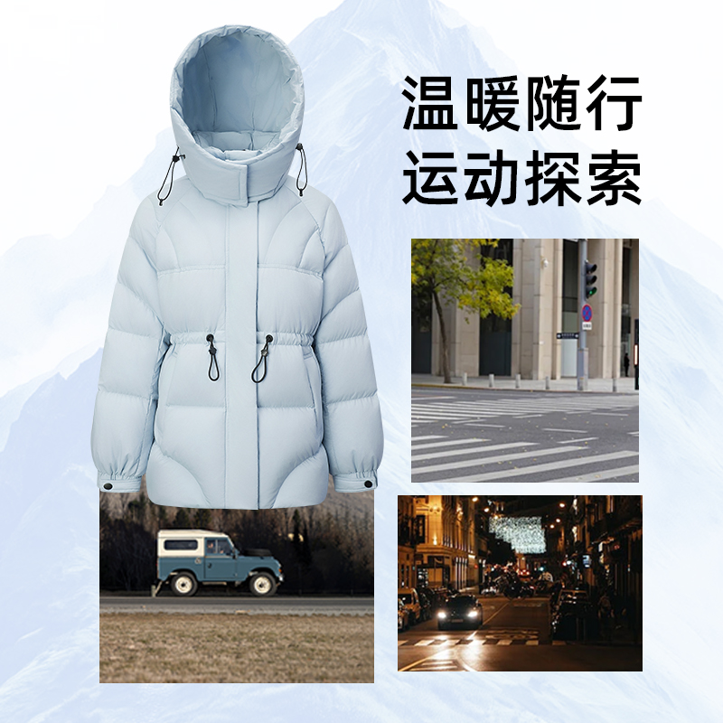 千仞岗2025秋冬新款 羽绒服连帽保暖都市通勤运动风女收腰外套 短款