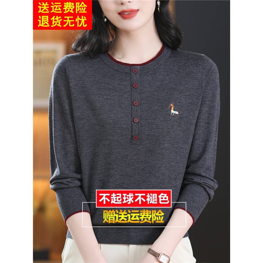 t恤女士宽松大码 桑蚕丝长袖 洋气减龄遮肚V领妈妈上衣 新款 2025秋装