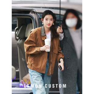 新款 复古美拉德麂皮绒外套女2025秋冬季 巴恩风夹克 王玉雯同款