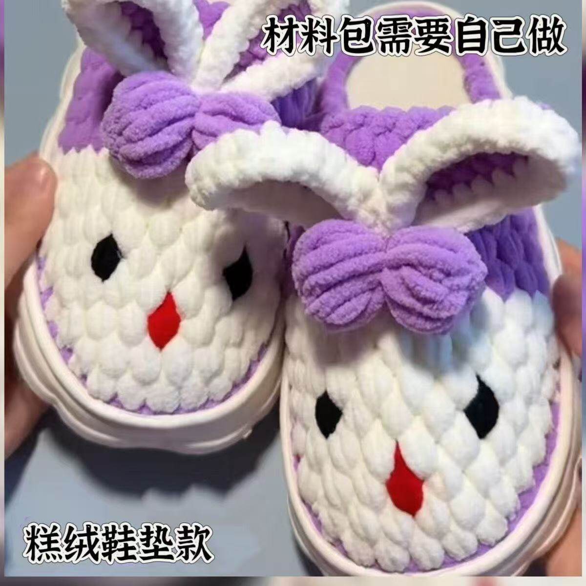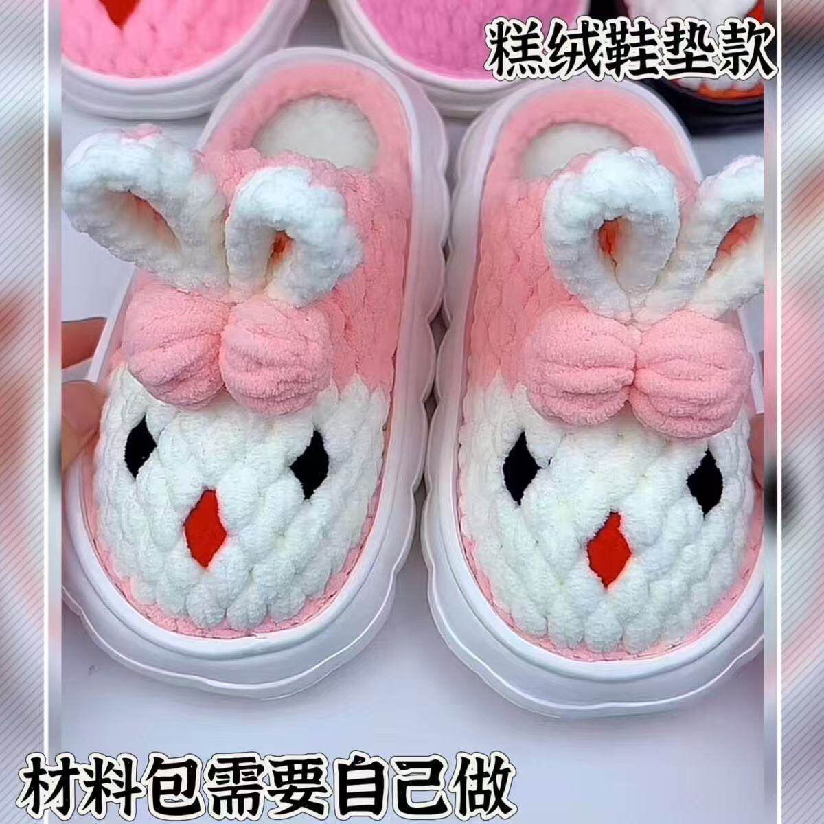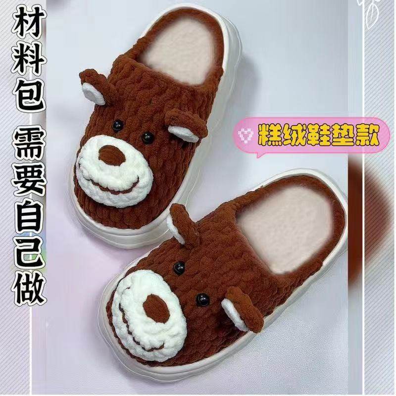 奥特曼草莓熊 材料包手工编织钩针儿童拖鞋 冰条线 加绒云朵底拖鞋
