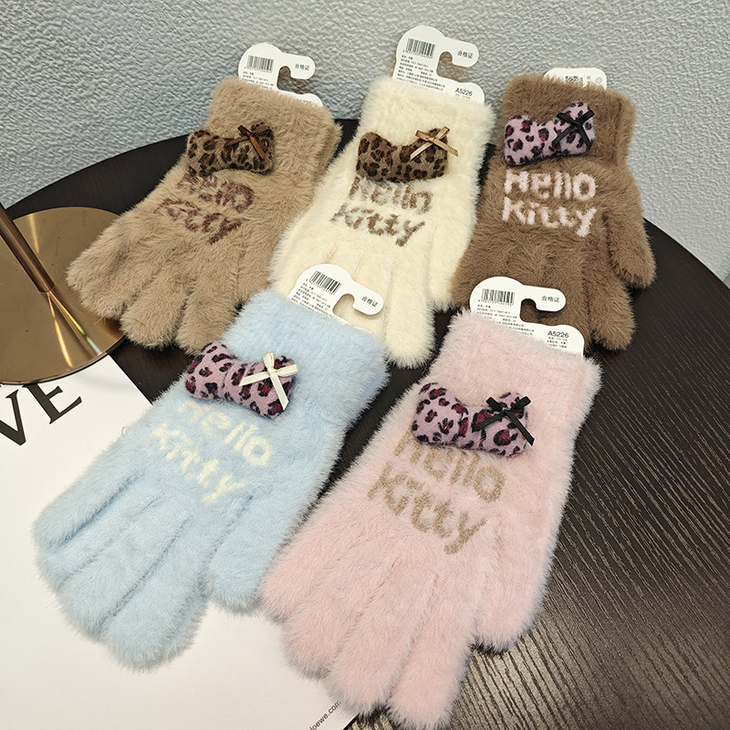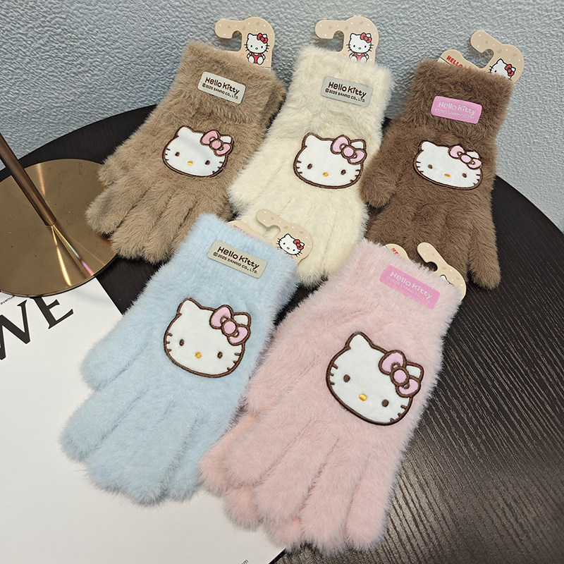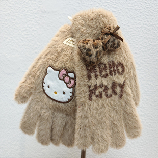 正版 加绒户外保暖防寒学生触屏 授权HelloKitty针织毛线手套女冬季