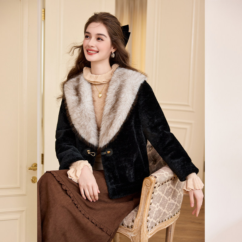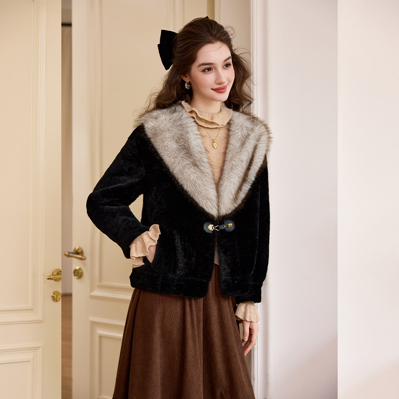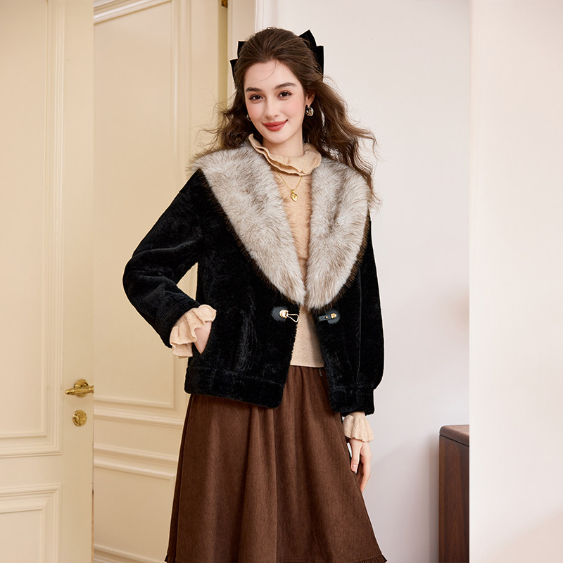 白鹿语高级感轻奢仿貂毛大衣25秋冬新款 加厚翻领时髦环保皮草外套