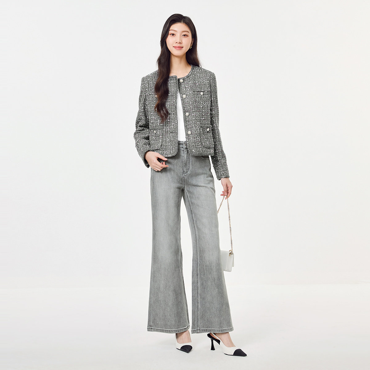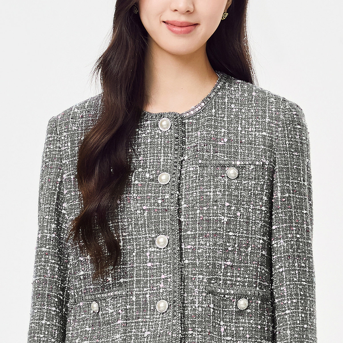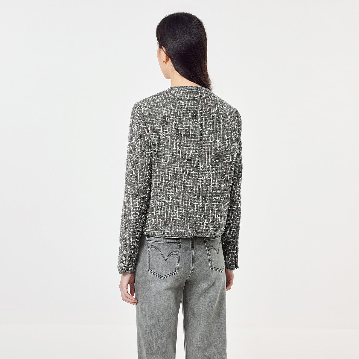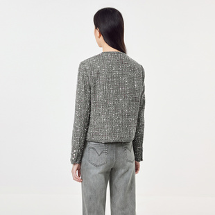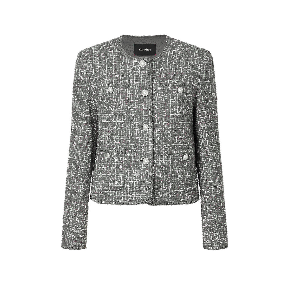 Koradior珂莱蒂尔2025年春季 重工香风亮片花呢格蕾灰色系短外套女