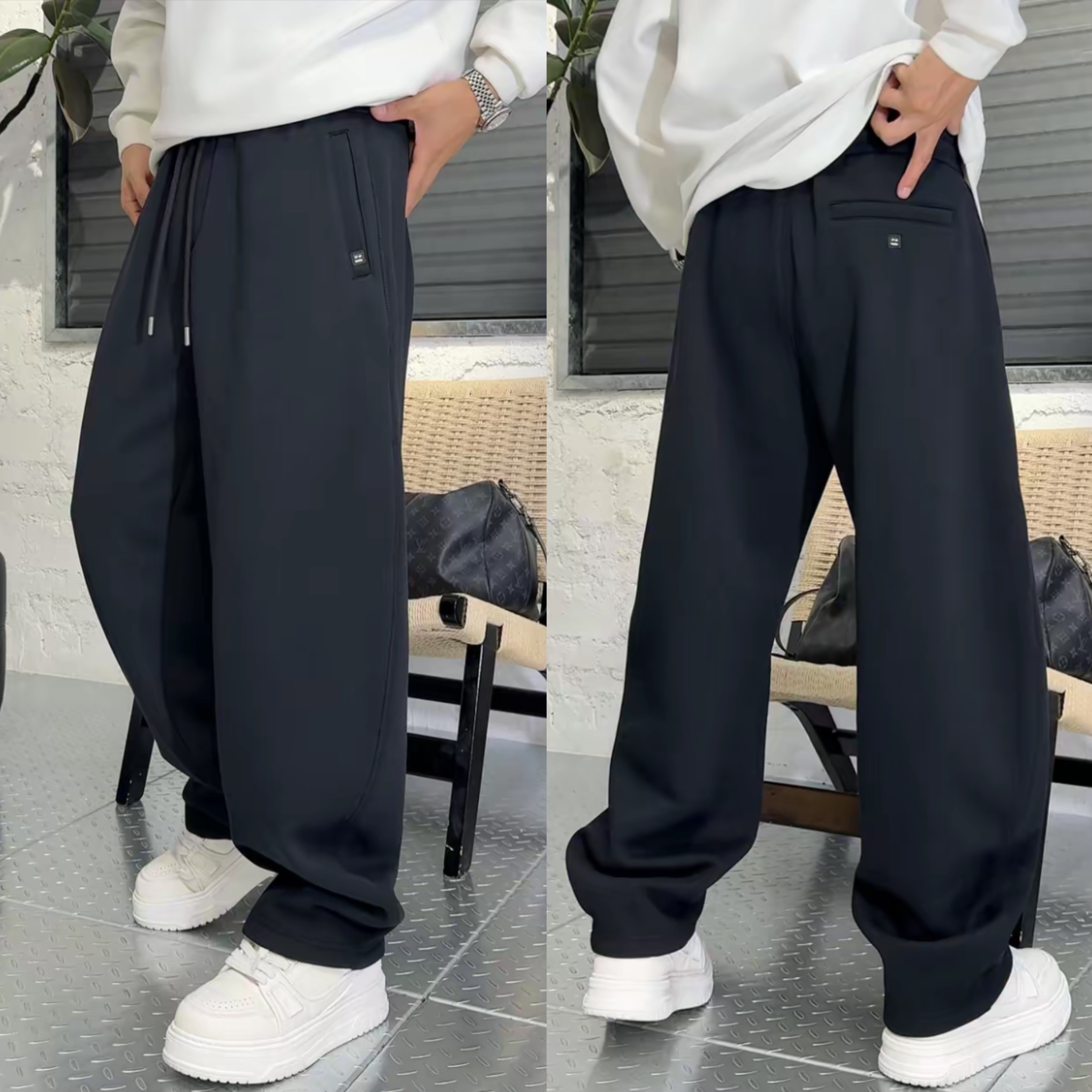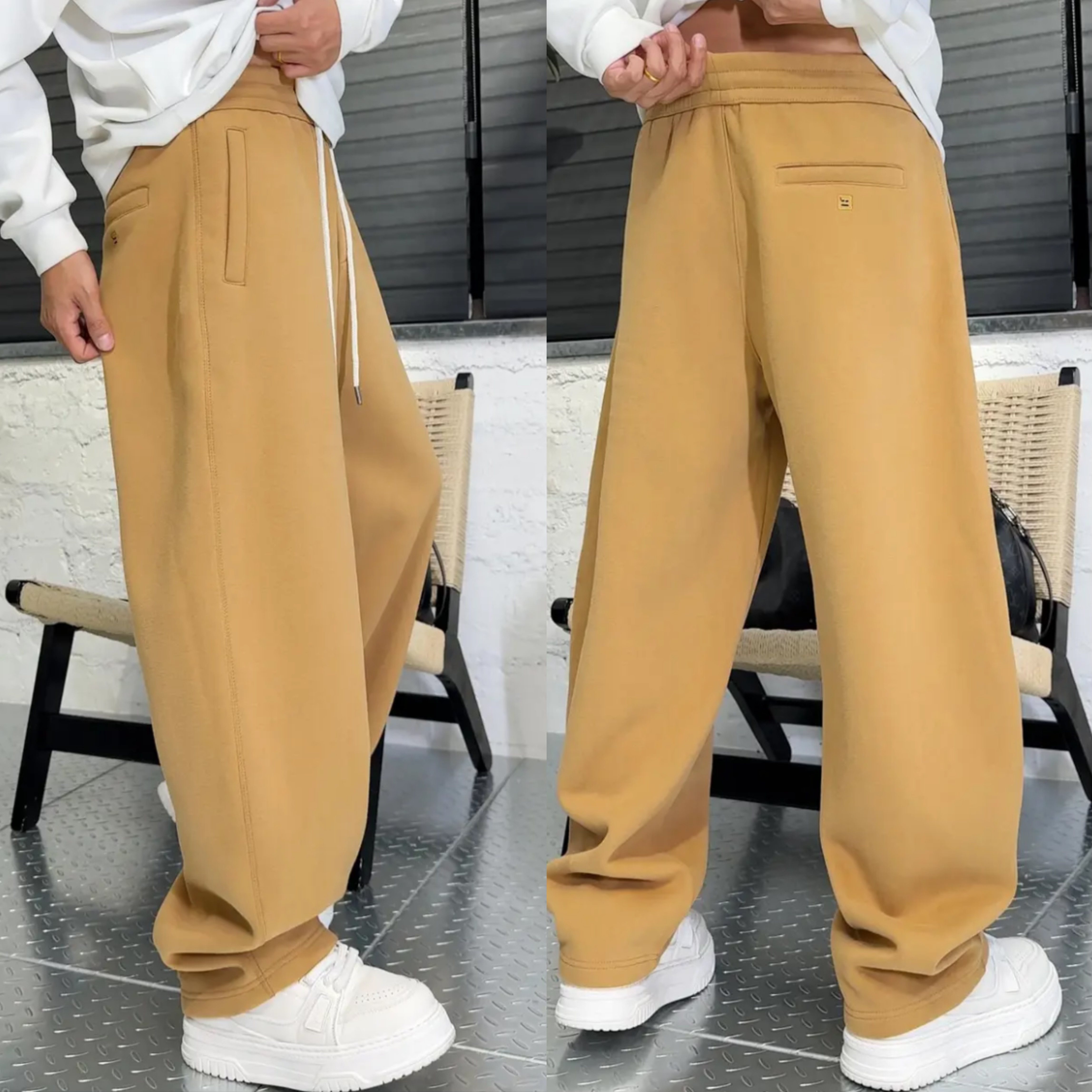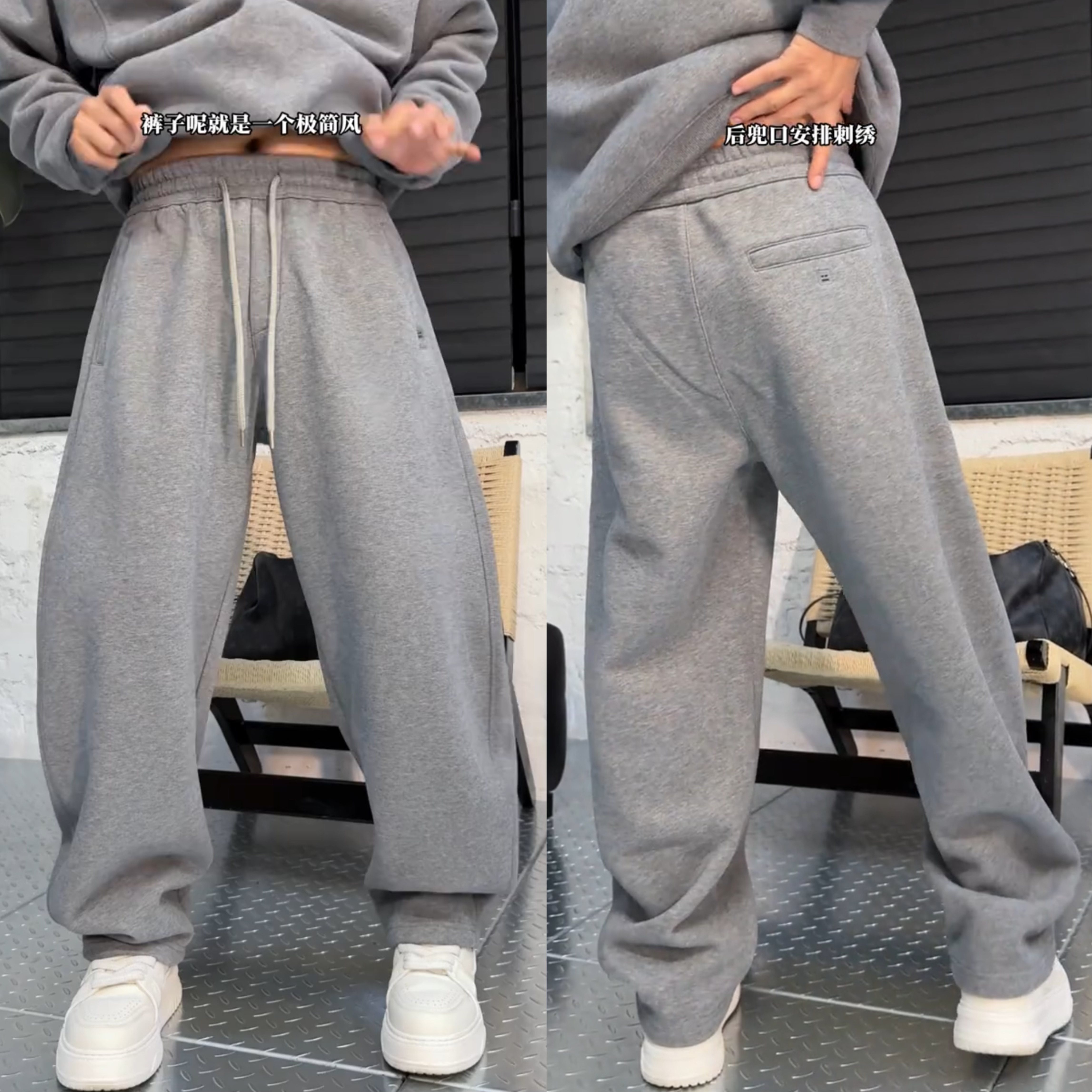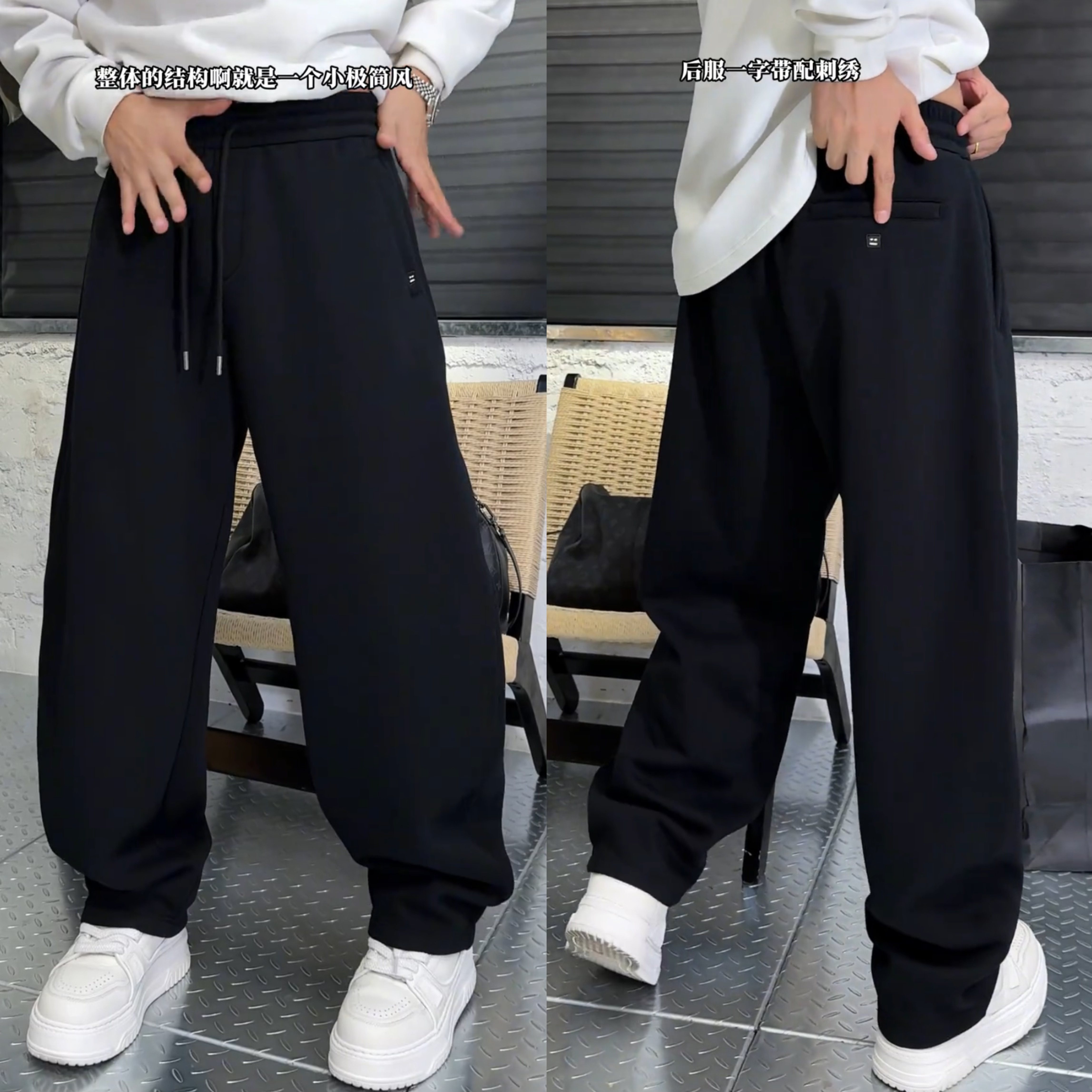 百搭宽松加绒保暖直筒卫裤 2025冬季 时尚 男士 极简风刺绣阔腿休闲裤