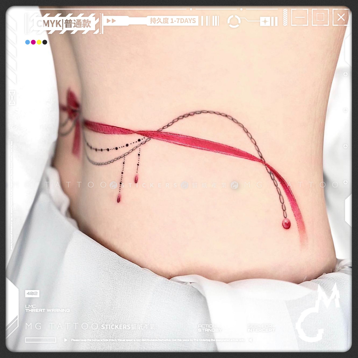 小蛮腰粉色腰链腿环可爱少女感Y2K腿部手臂腰臀纹身贴 tattoo
