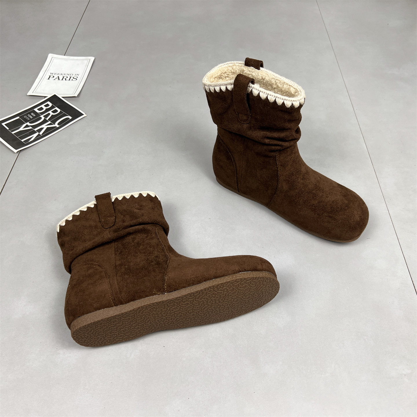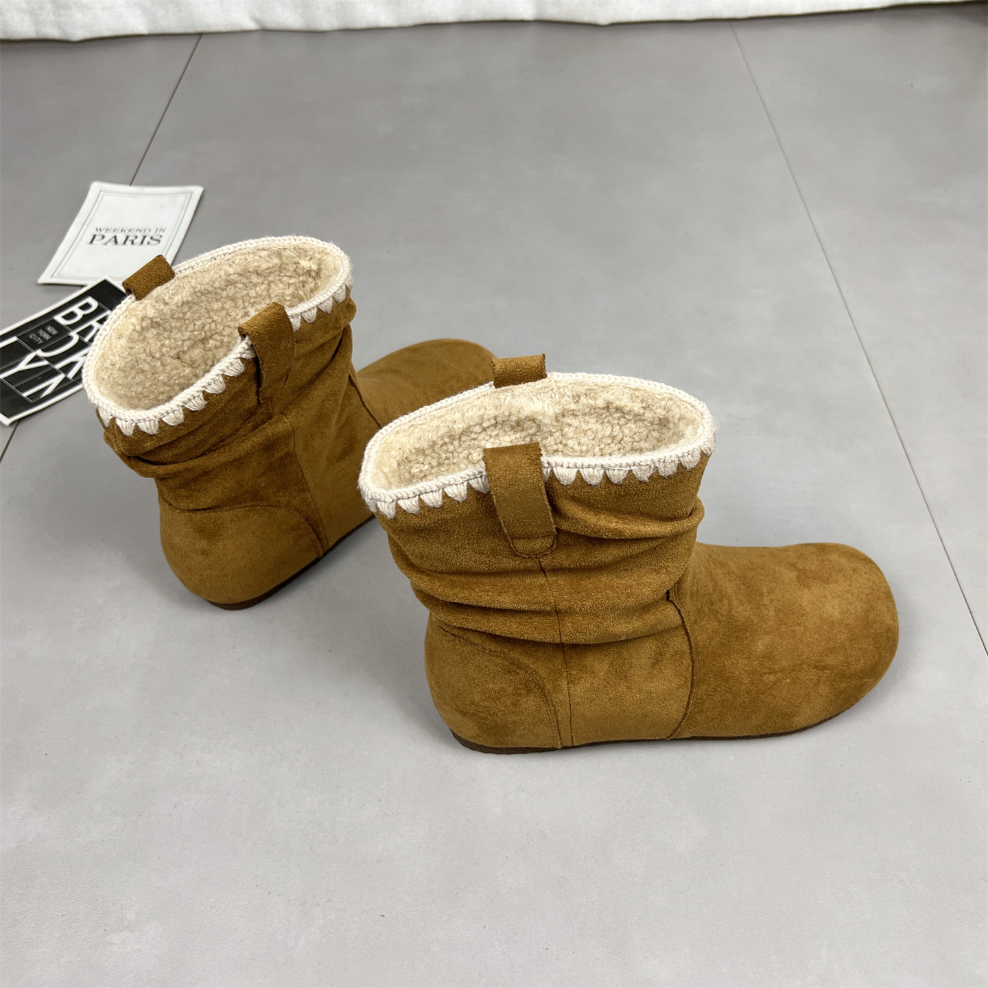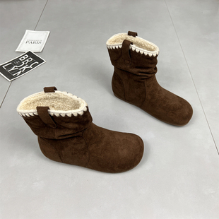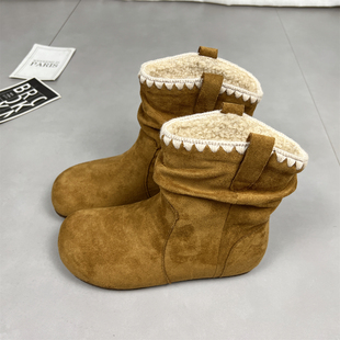 真皮加绒保暖堆堆雪地靴女2025冬季 英伦风内增高短靴马丁靴子 新款
