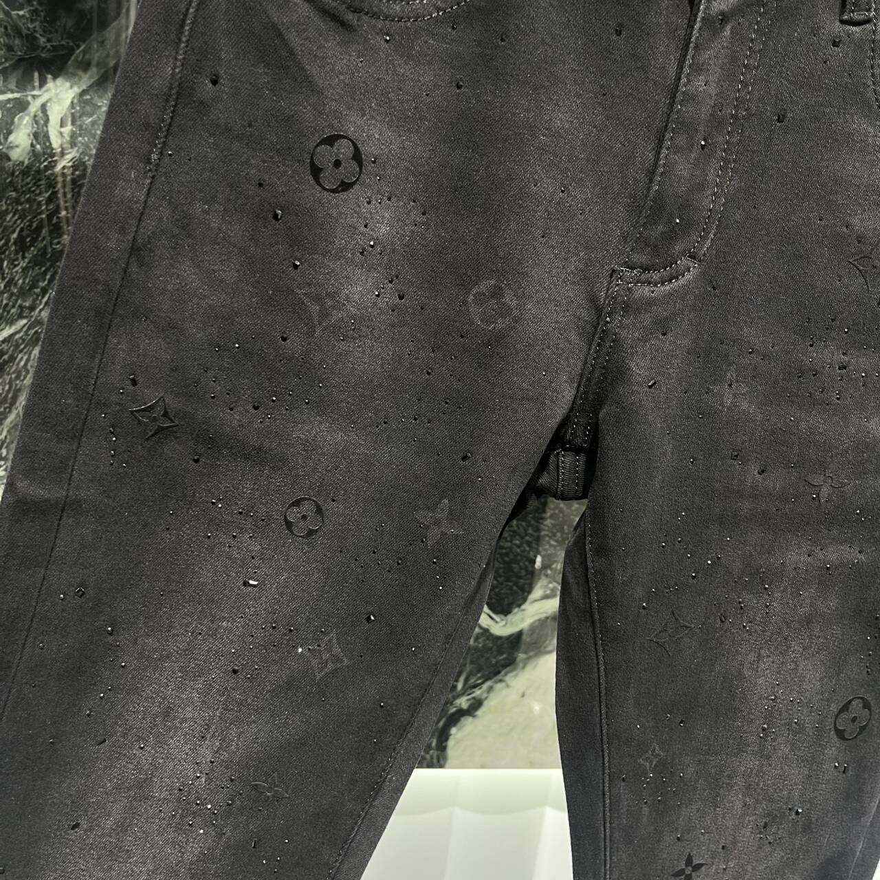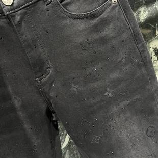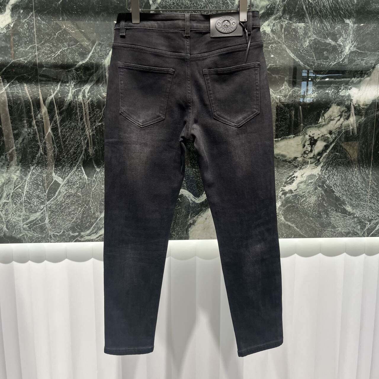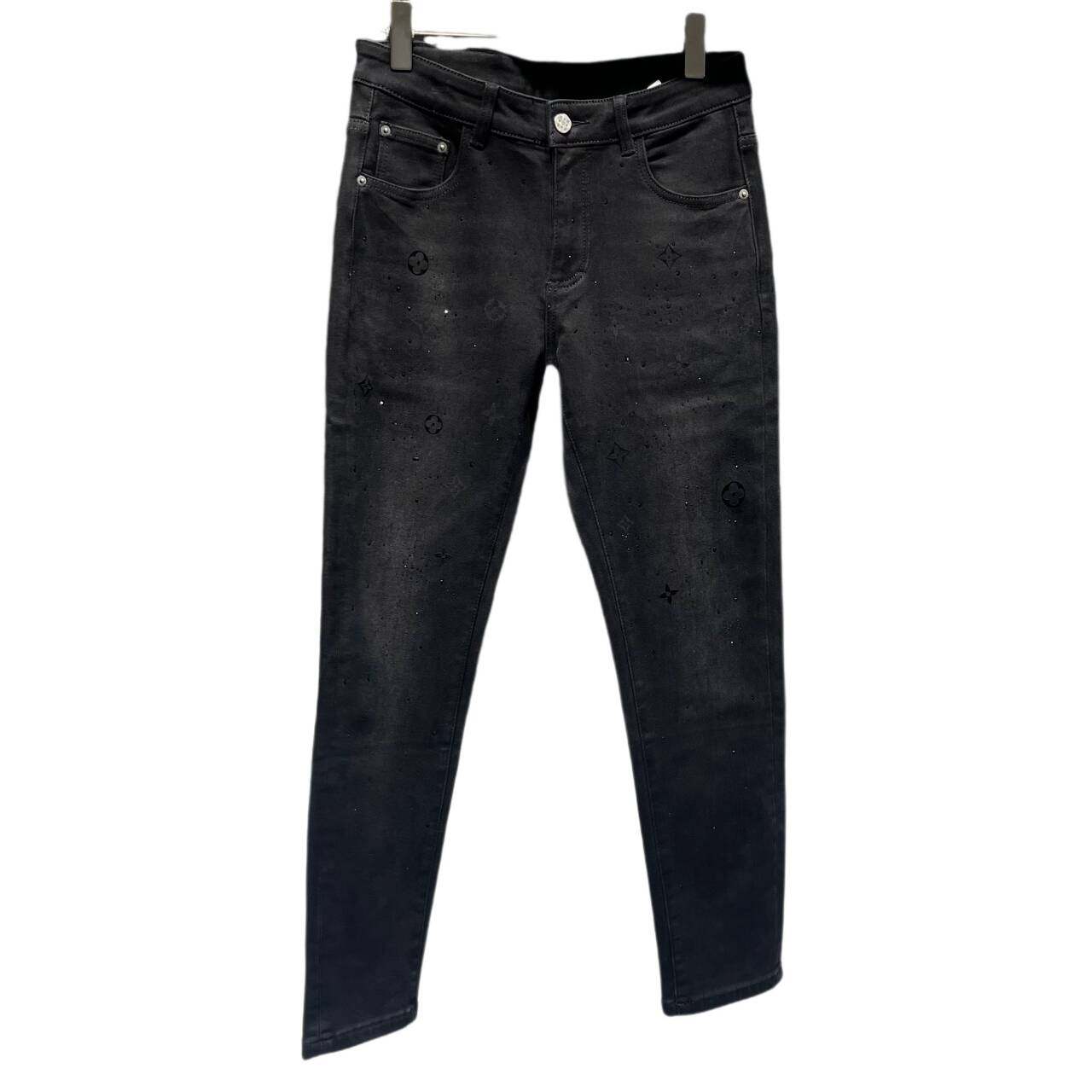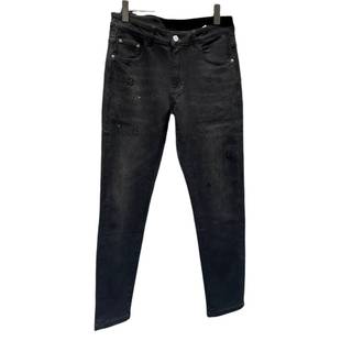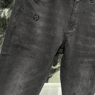小脚长裤 弹力潮流蓝灰色修身 高端潮牌 男秋冬厚款 柔软印花牛仔裤