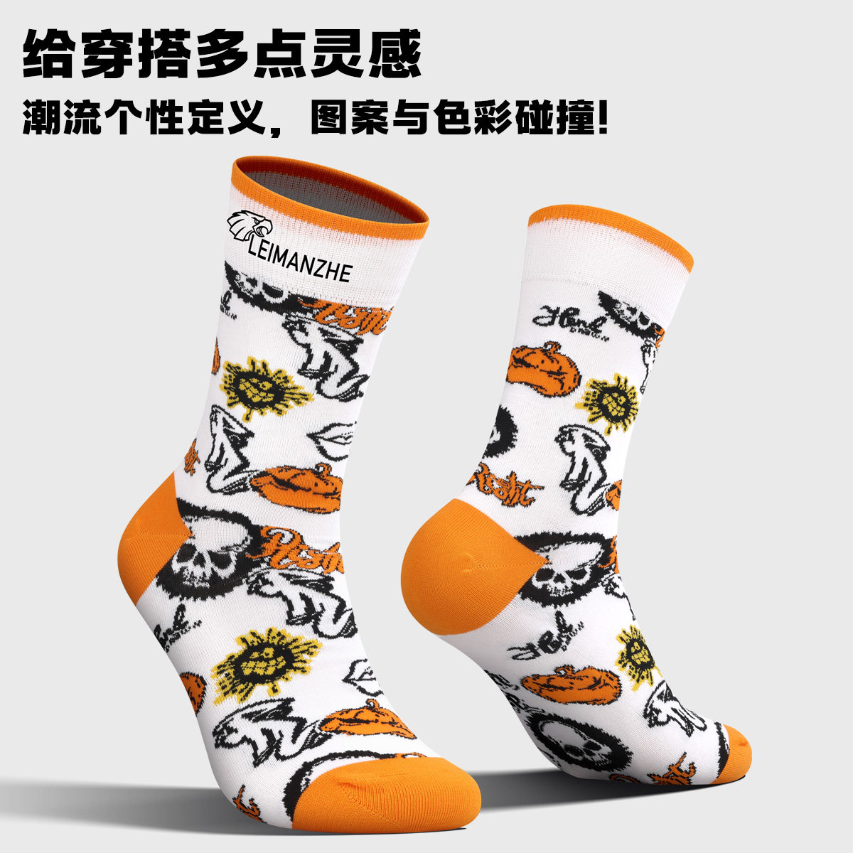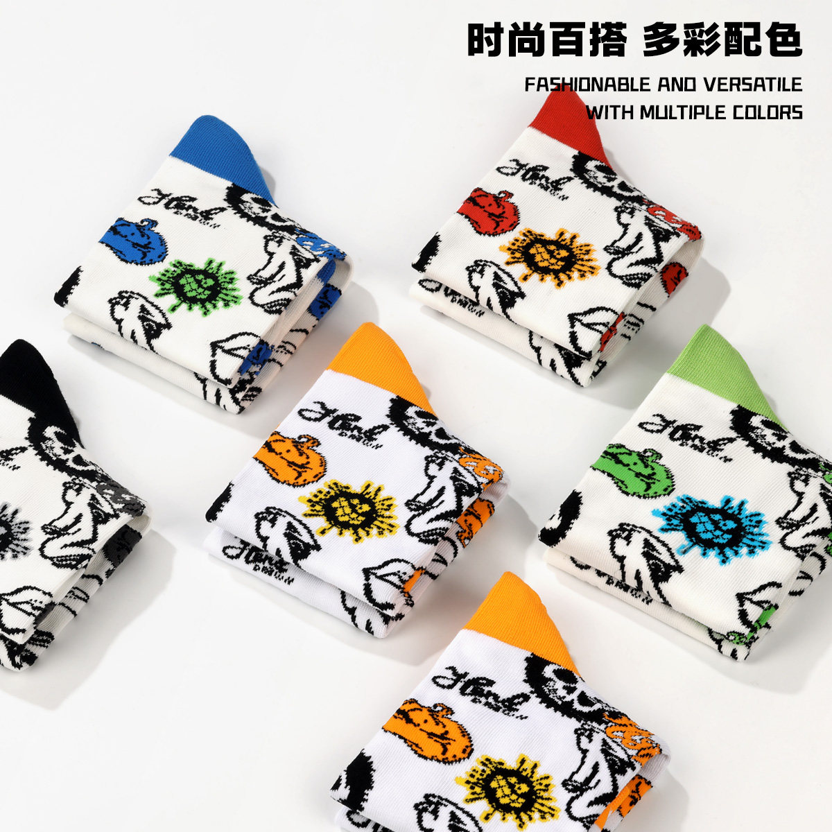 5双袜子男女纯棉防臭中筒袜情侣刺绣学生百搭ins高帮运动长筒袜潮