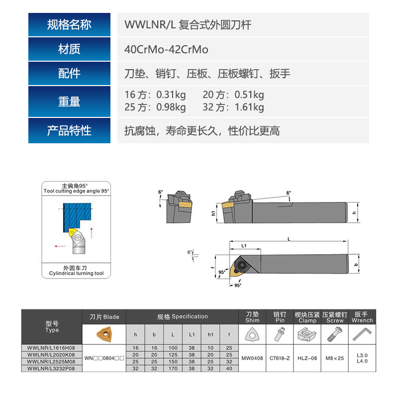 桃形车刀杆粗车 2525M08车床刀具 数控刀杆 外圆车刀WWLNR2020K08
