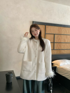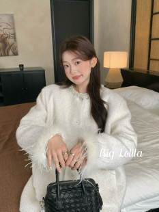 小香风羽绒外套加厚秋冬季 羽绒内胆 鸵鸟毛袖 法式 胖MM200斤 大码
