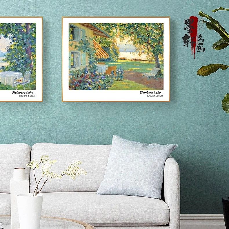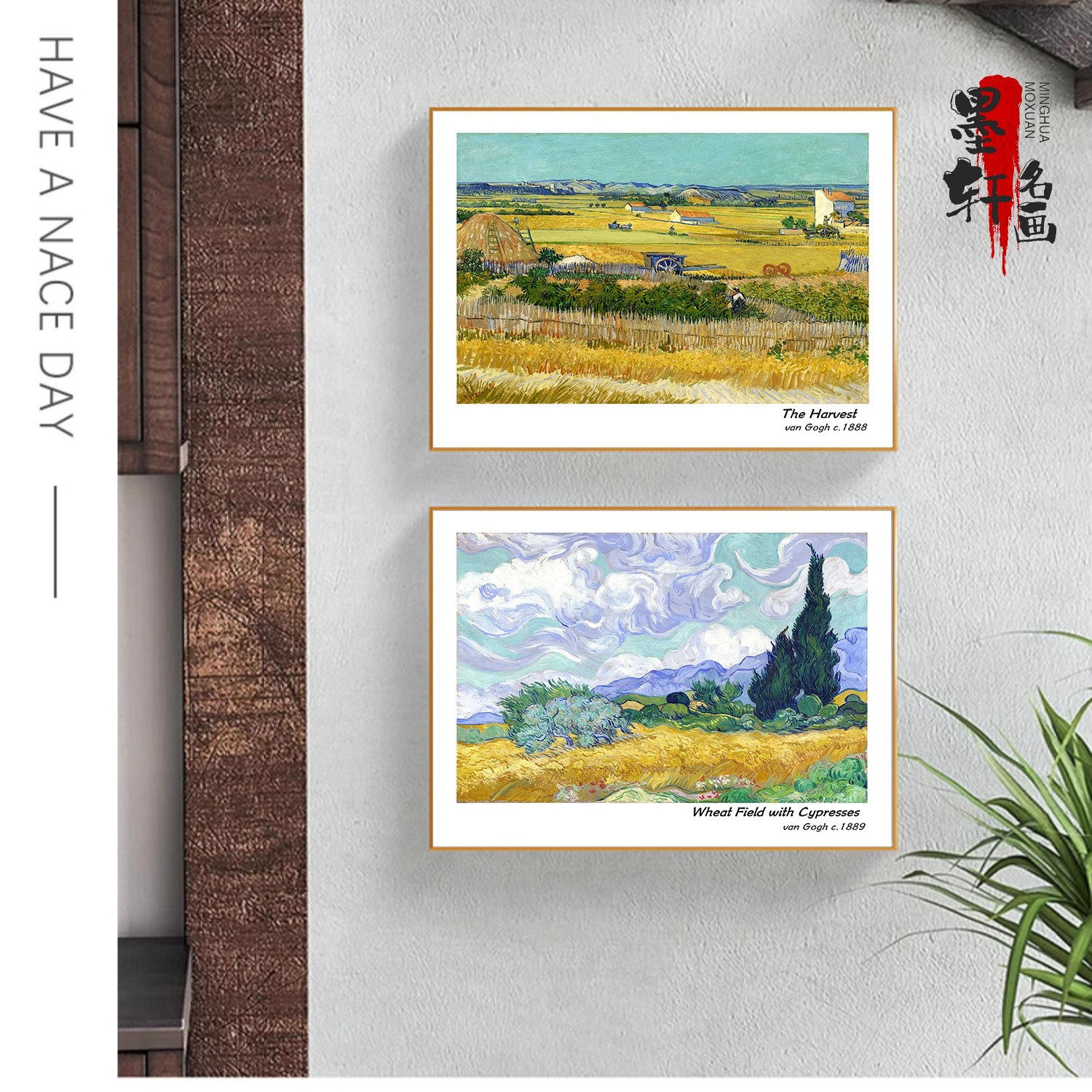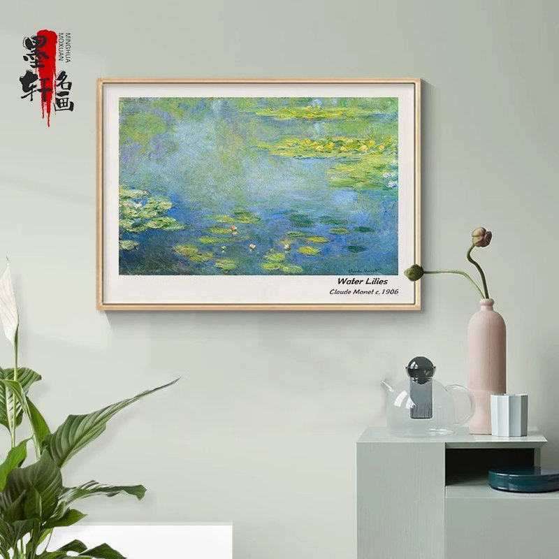 莫奈装 现代简约高级感卧室客厅摆挂画 饰画梵高仿油画风景成品横版