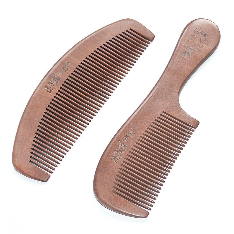 2把装 女实木防静电按摩刻字 天天见天然无漆桃木梳子大号两把套装