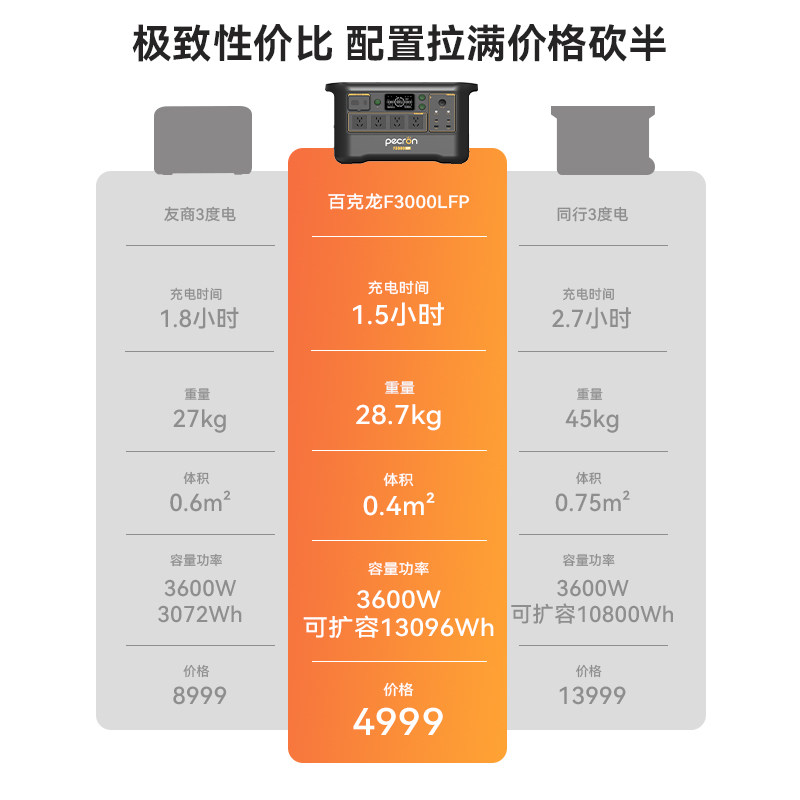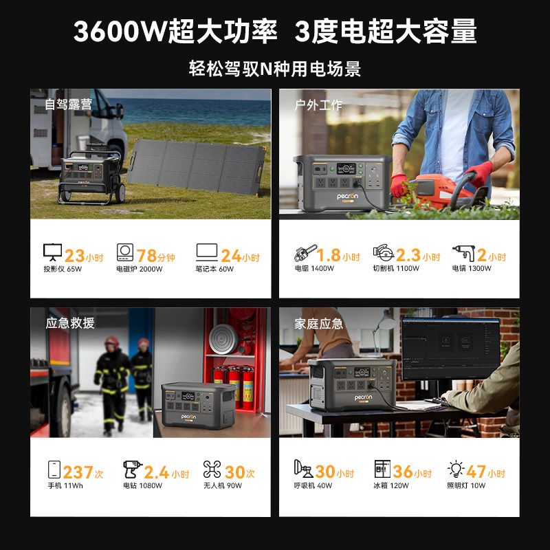 英规美规欧规3度电户外电源F3000LFP大容量3600W大功率110V 220