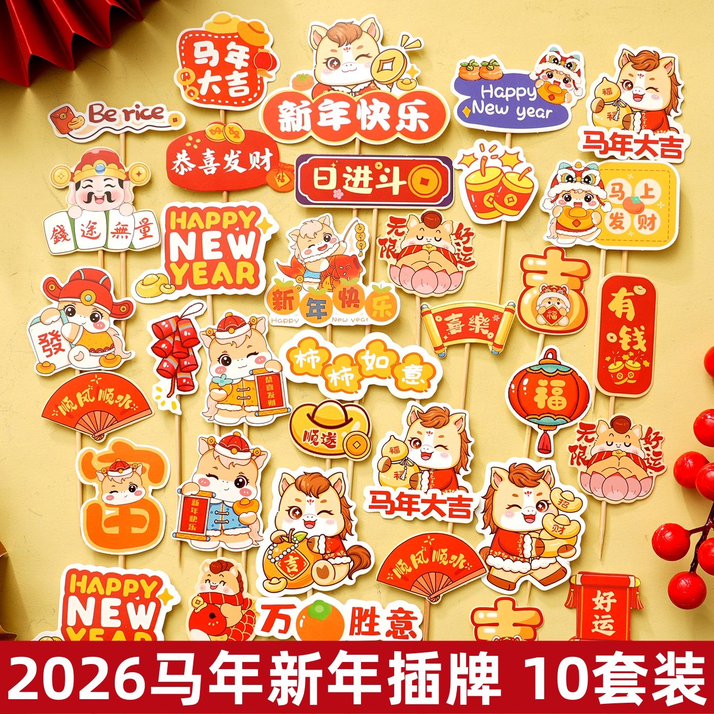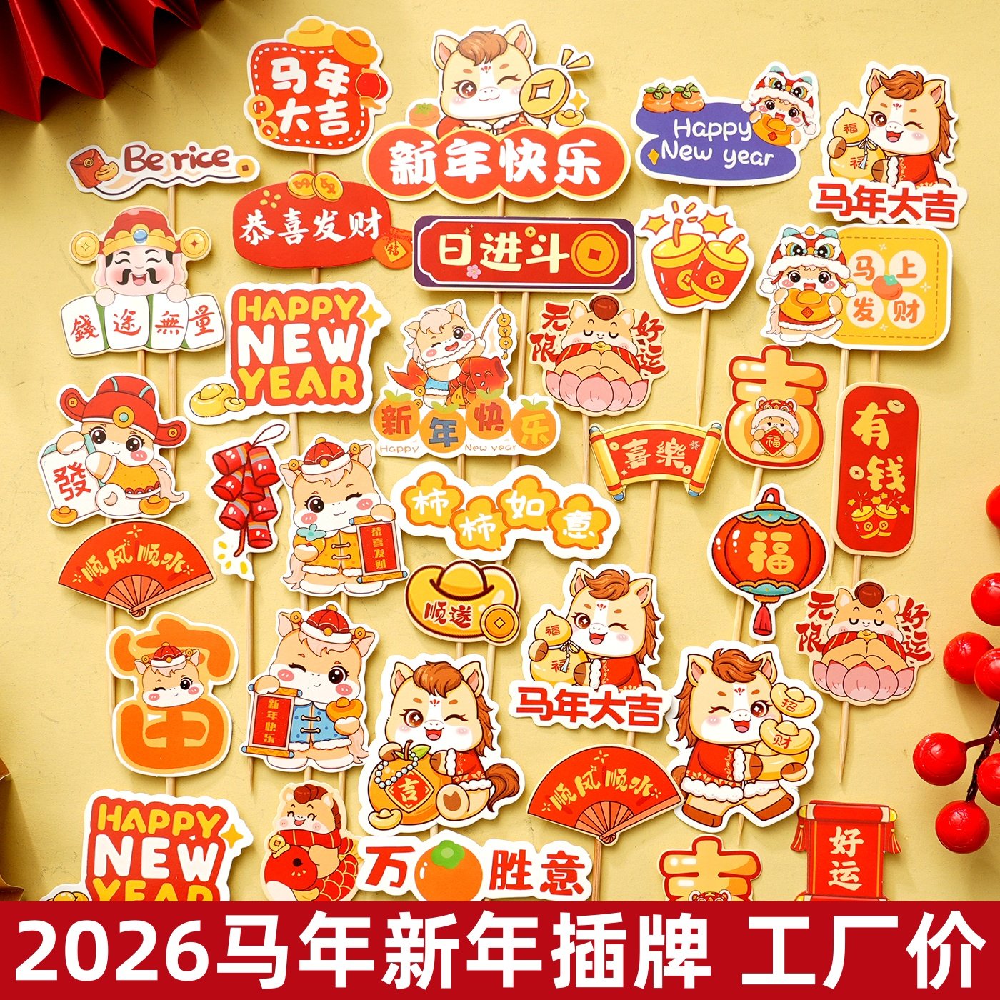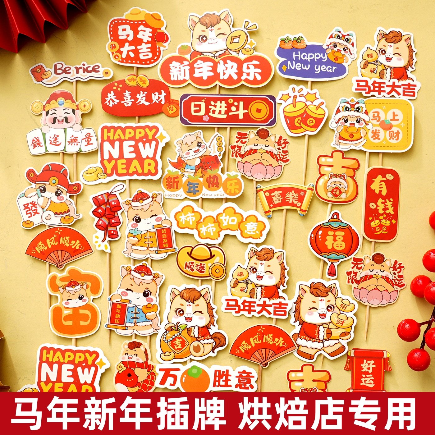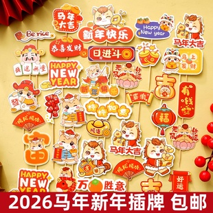 2026马年大吉插牌蛋糕装 扮插件 饰新年日进斗金柿柿如意节日烘焙装