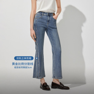 新款 牛仔裤 裤 喇叭裤 女 身侧边拼接高腰显瘦九分裤 ONLY2026春季