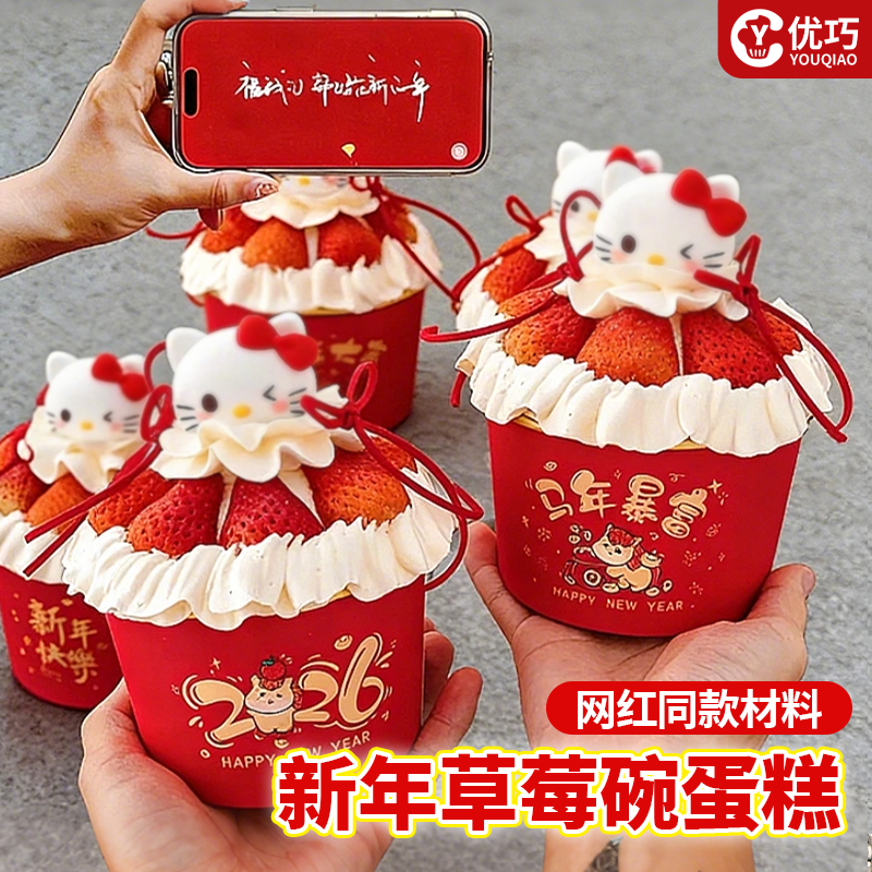 2026新年蛋糕装 饰亚克力插牌蝴蝶结金色许愿球跨年蛋糕插件摆件