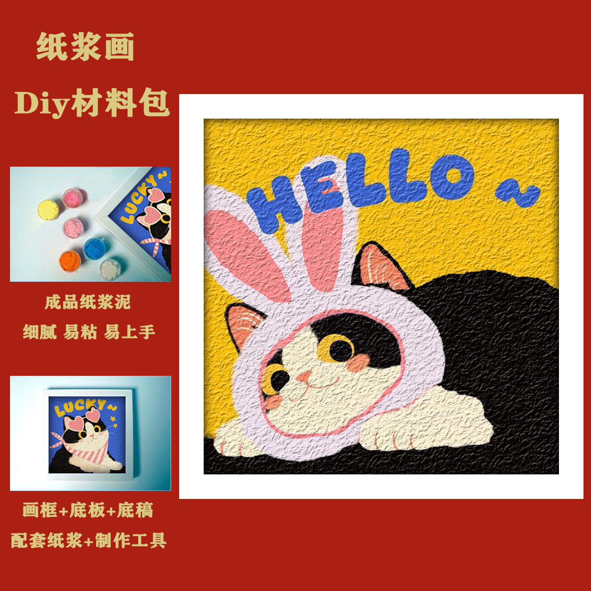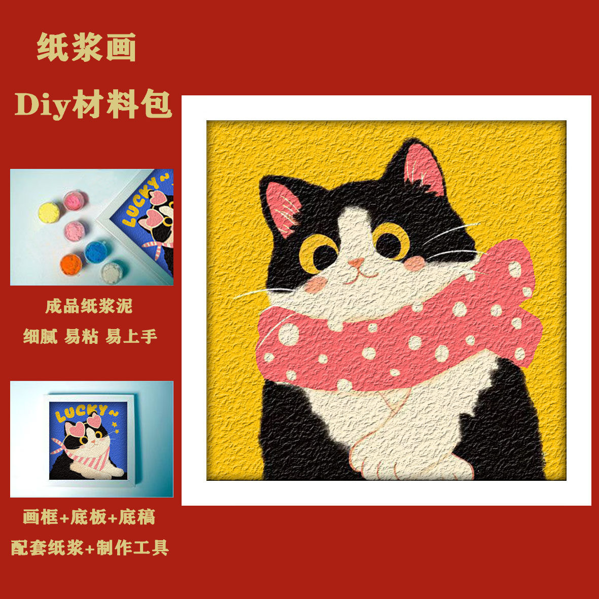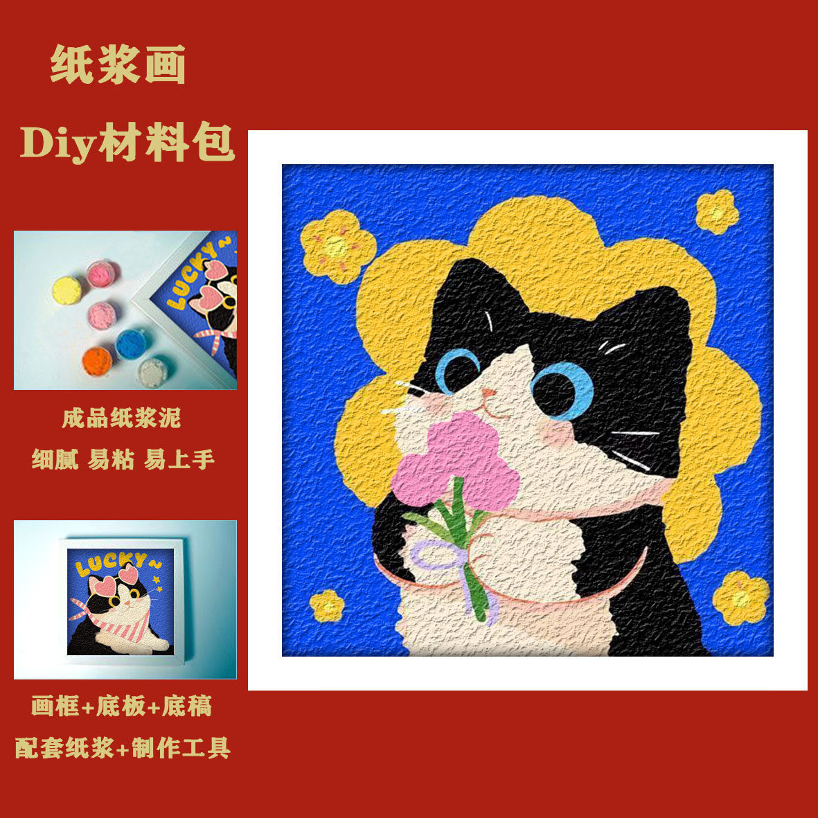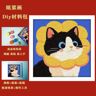 卡通纸浆画diy整套材料包男女儿童手工生日礼物戳戳画填色肌理画