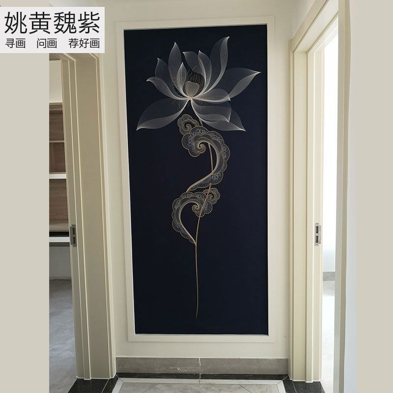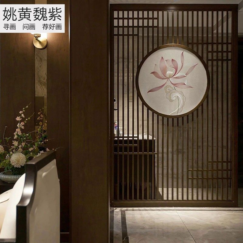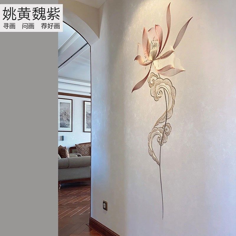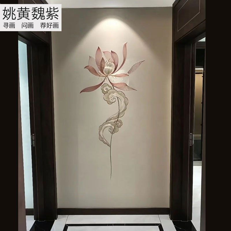 楼道大玄关圆形定制高端独秀莲图墙布22新款 荷竖向刺绣粉色
