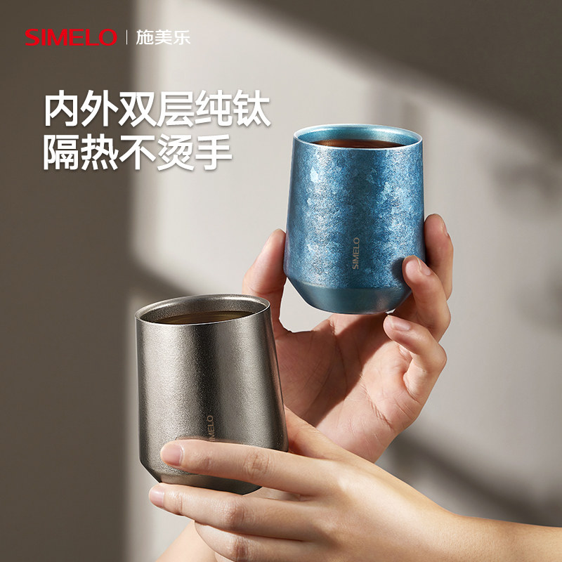 天沏纯钛保温杯女士高颜值双层钛杯便携车载水杯彩钛闲庭焖泡茶杯