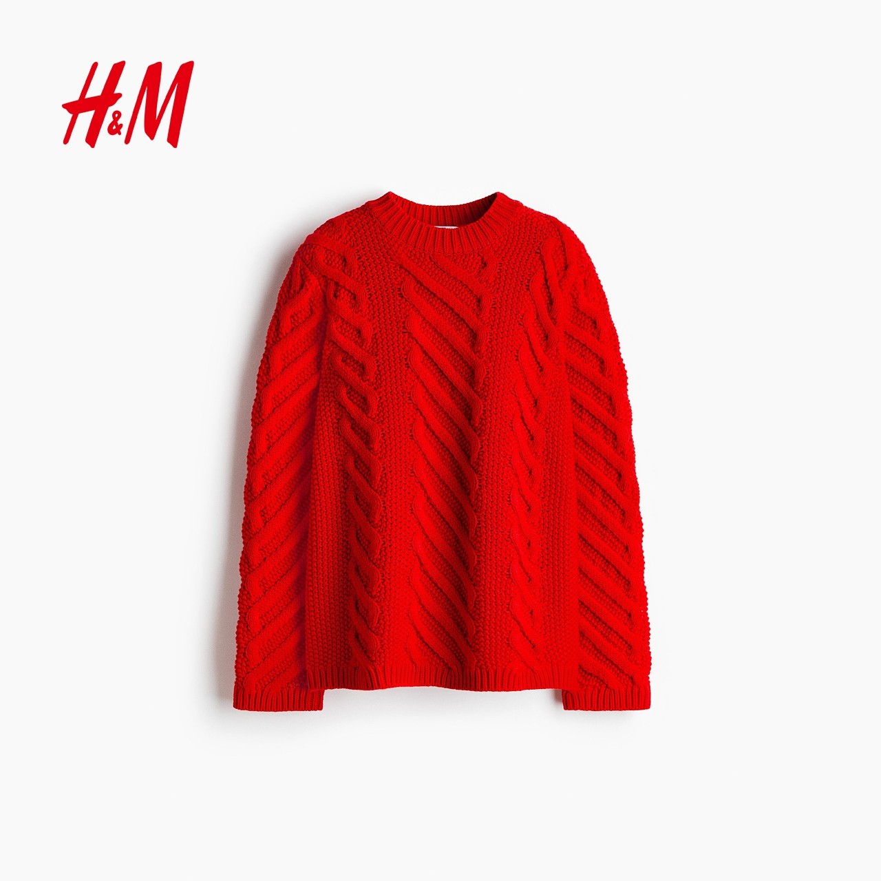 红色毛衣打底羊毛混纺套衫 春季 1315055 毛针织衫 HM女装