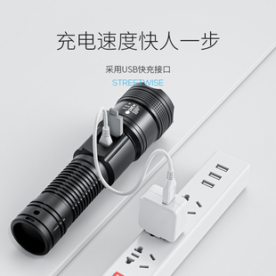手电筒强光充电长续航锂电户外变焦远射家用应急小便携多功能耐用