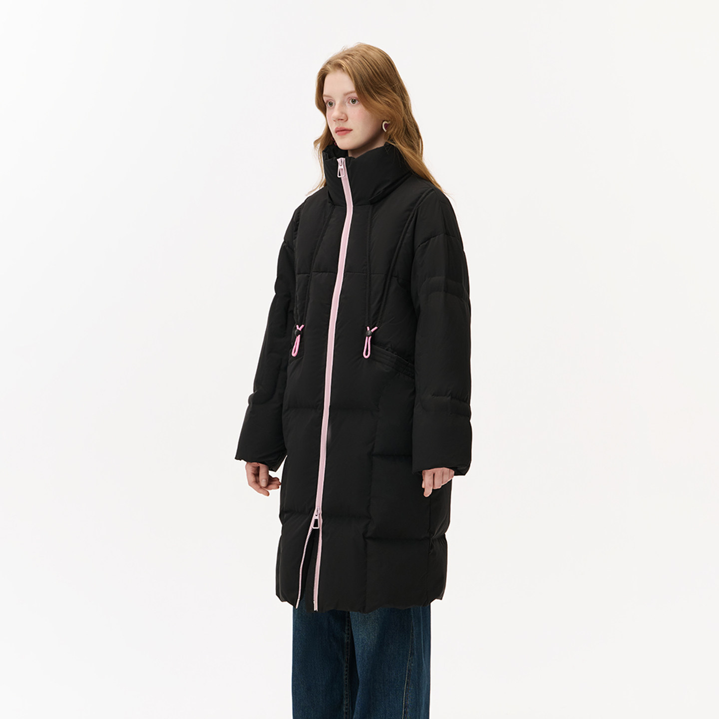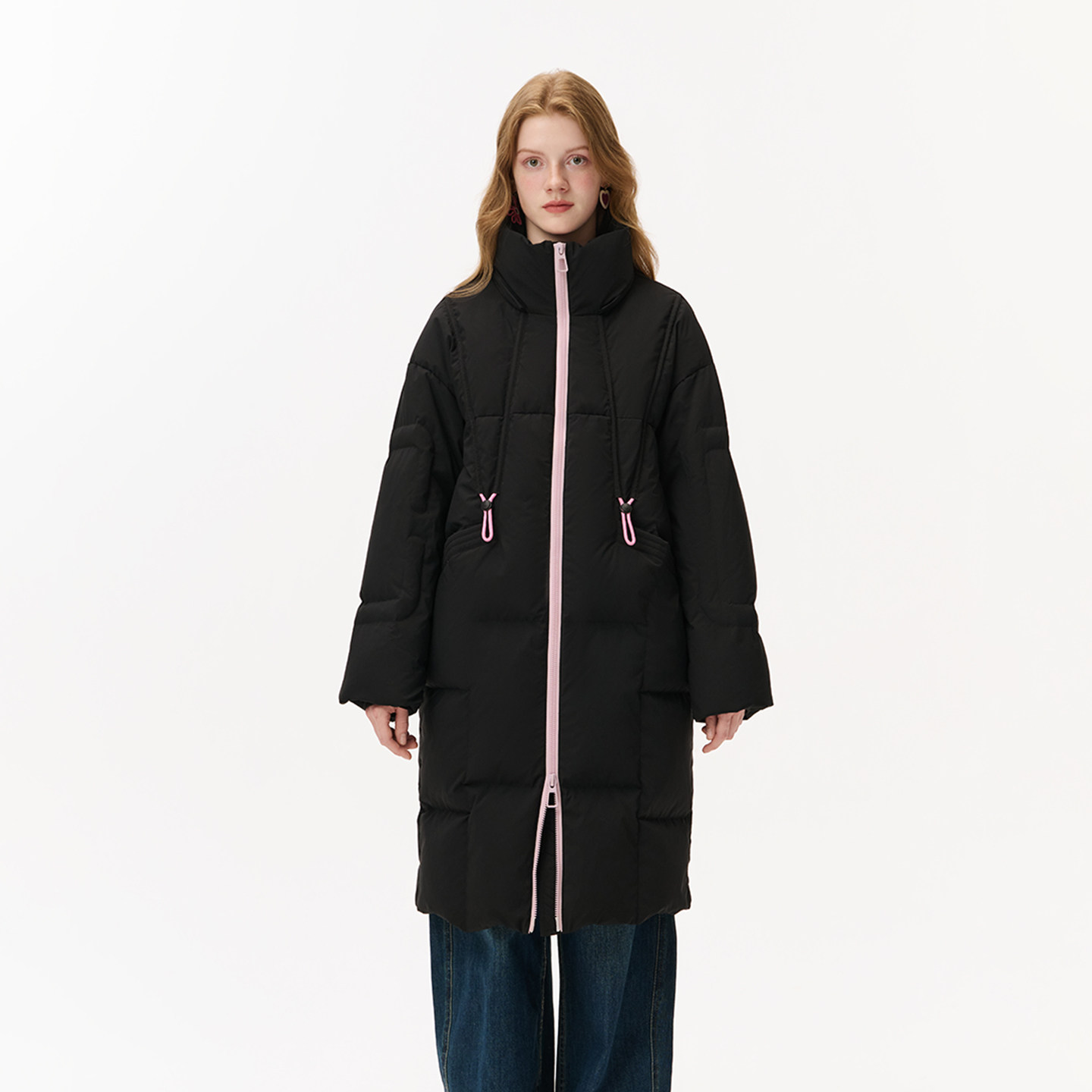 innplanet新款 羽绒服PO31DJ043A 黑色立领潮流减龄宽松保暖中长款