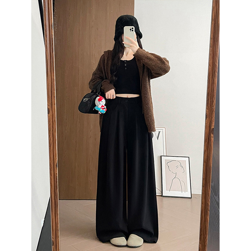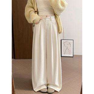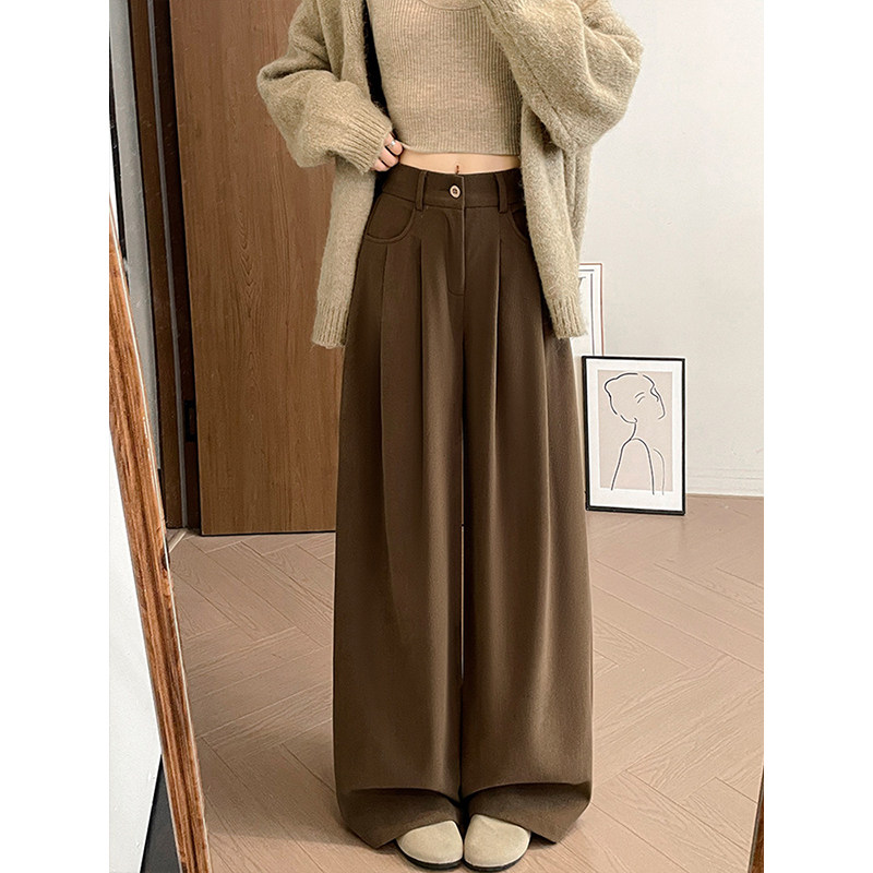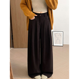裤 胖mm高腰宽松显瘦秋冬棕咖色西装 女大码 300斤美拉德风阔腿裤