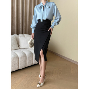 半身裙高级感 司南 侧开叉褶皱西装 秋冬法式 SN3917 时髦感通勤风