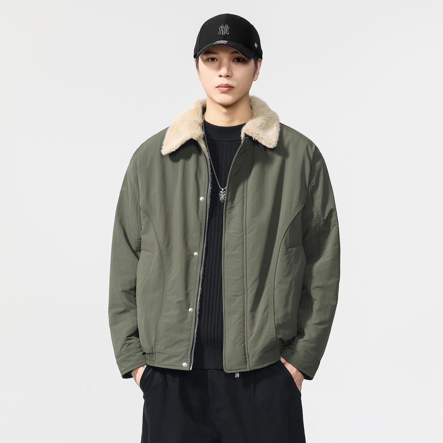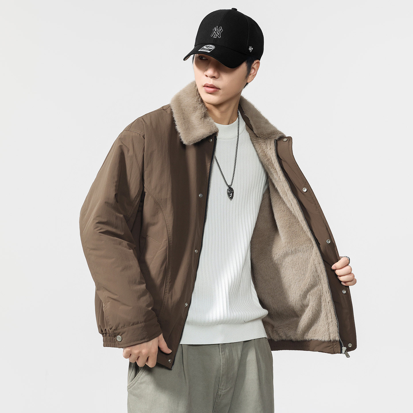 超舒服加绒加厚夹克商务休闲宽松棉衣 仿貂毛外套男士 2025冬季 新款