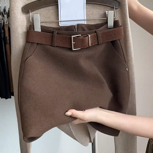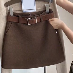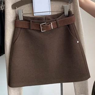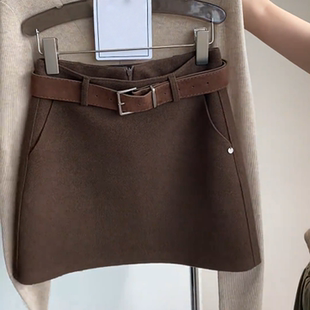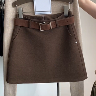 韩系复古咖色毛呢半身裙大码 高腰显瘦百搭A字裙 胖mm2025秋冬新款