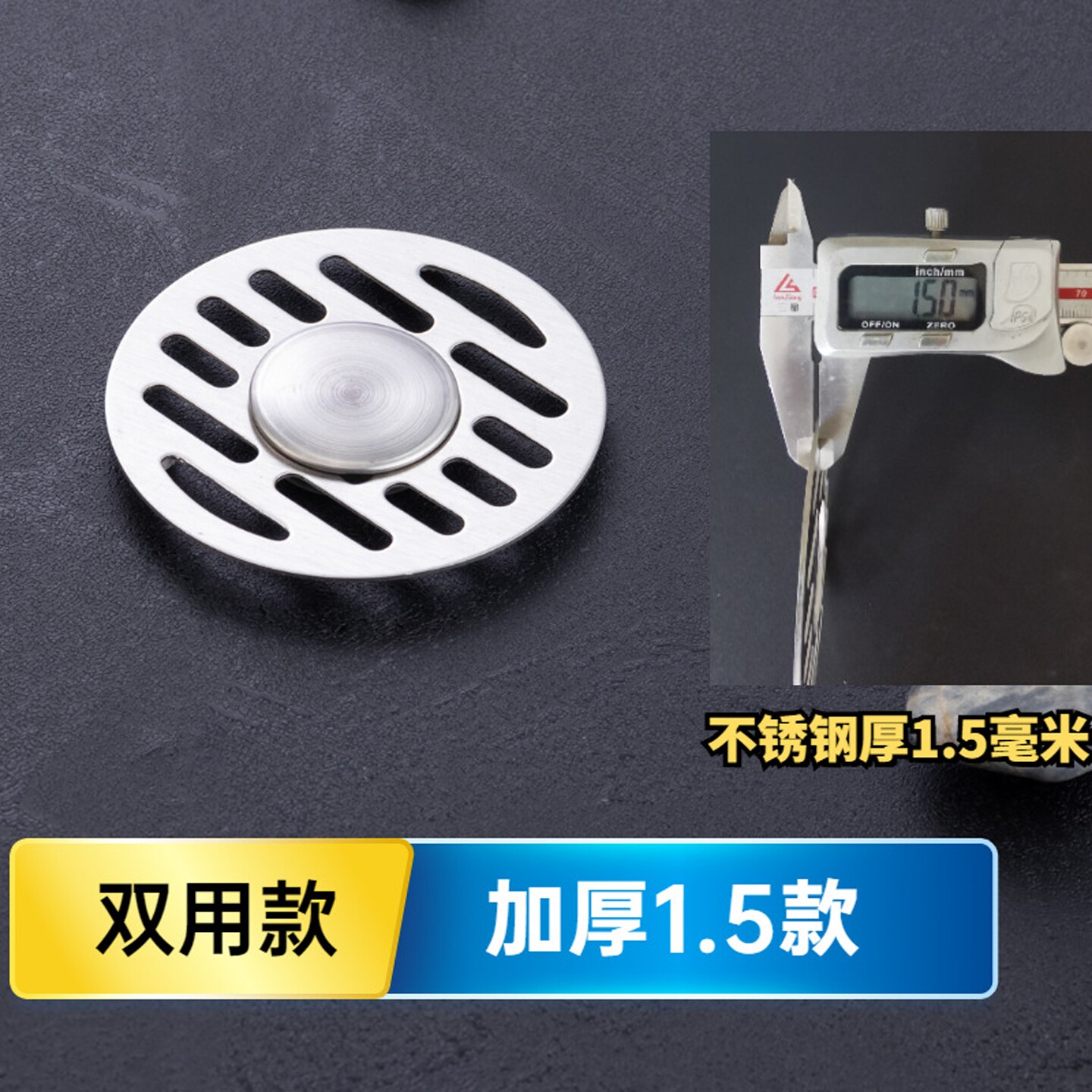 不锈钢地漏盖子加厚1.5mm双面拉丝圆形地漏盖片洗衣机双用不割手