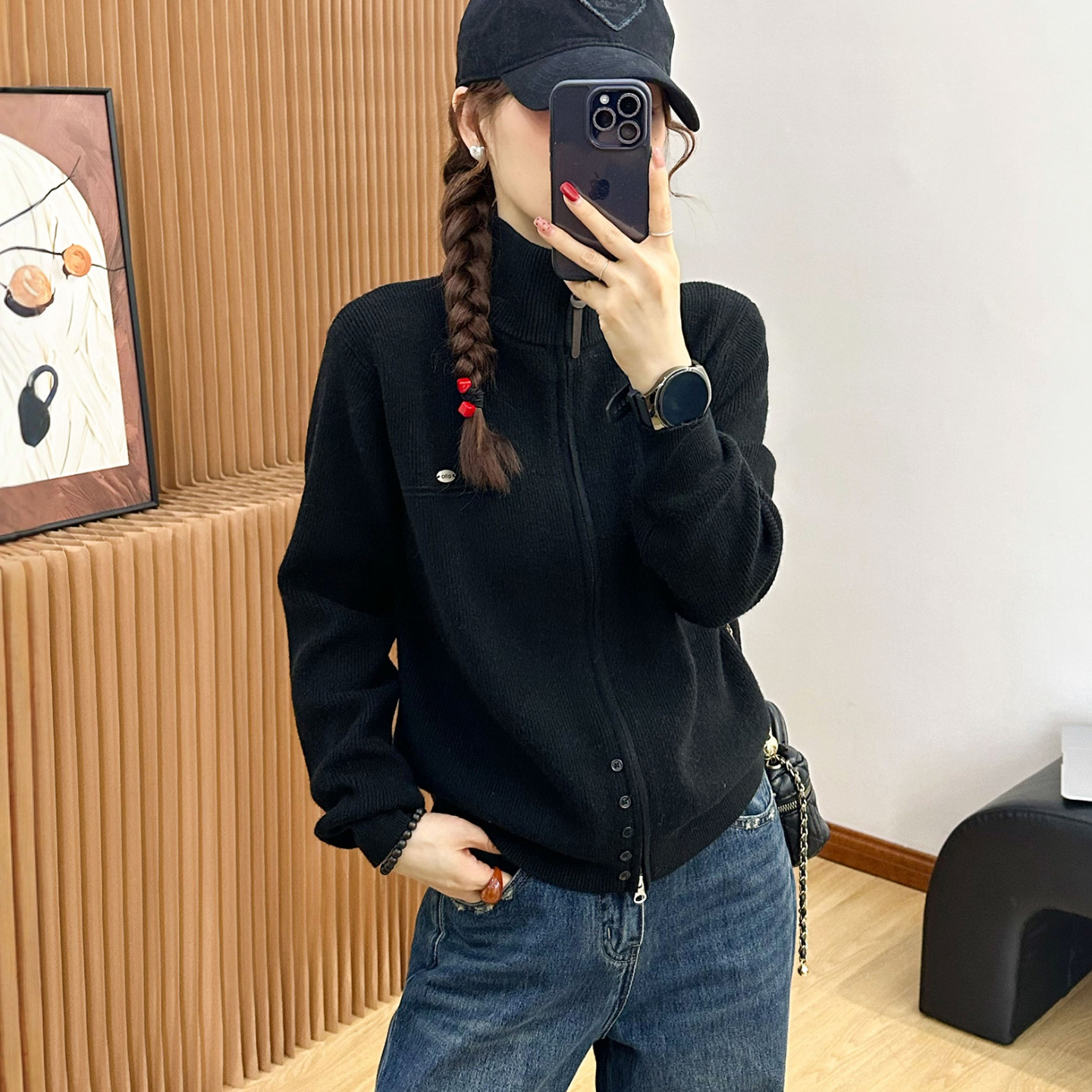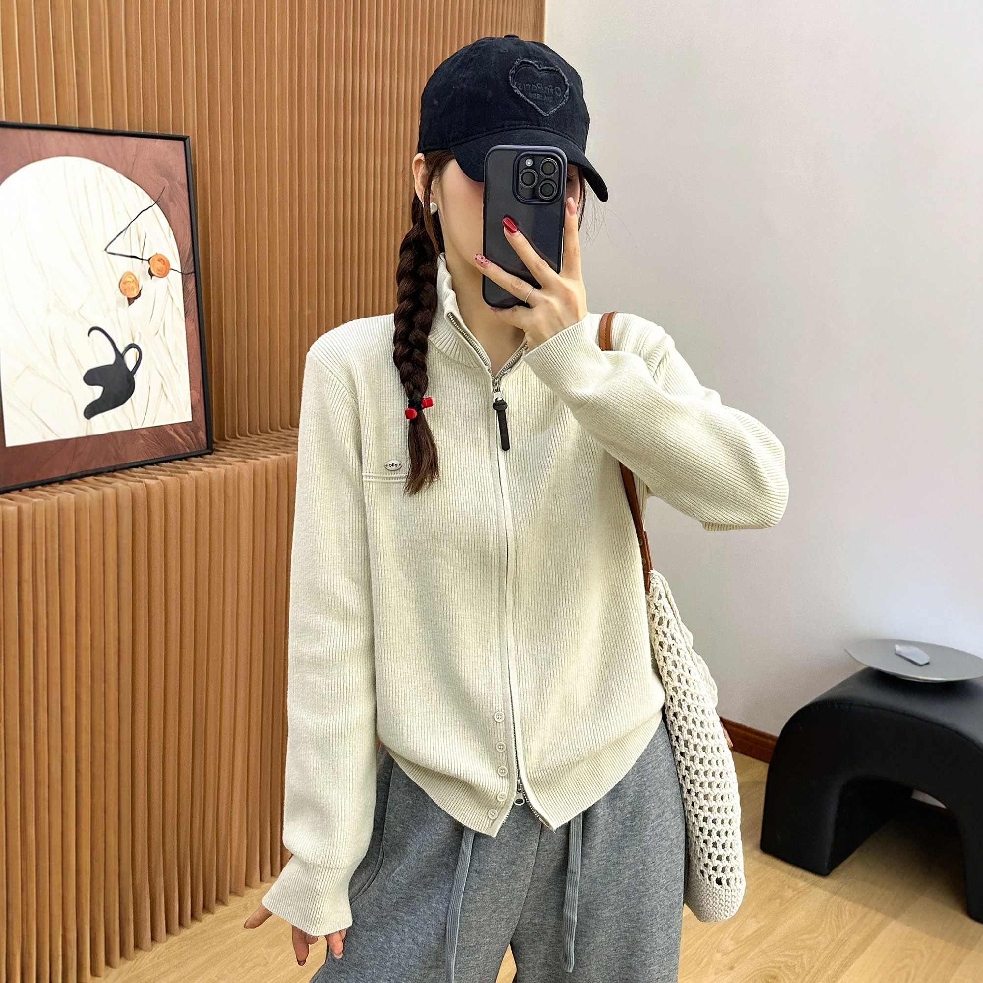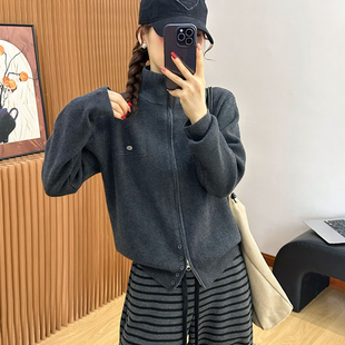 打底衫 金属标双拉链羊绒针织开衫 欧货女装 新款 潮 女欧洲站2025冬装