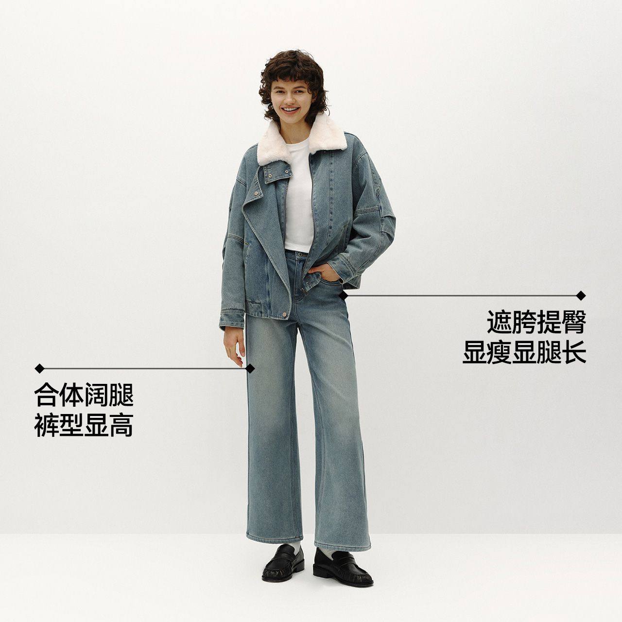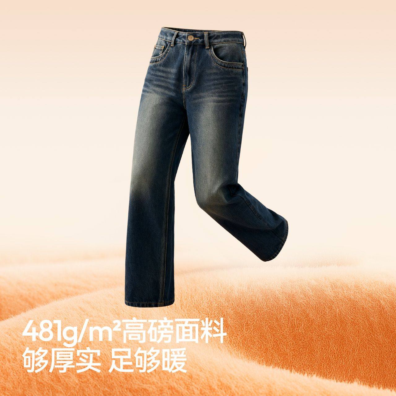 阔腿长裤 女冬加绒2025新款 森马牛仔裤 103725124007A 商场同款