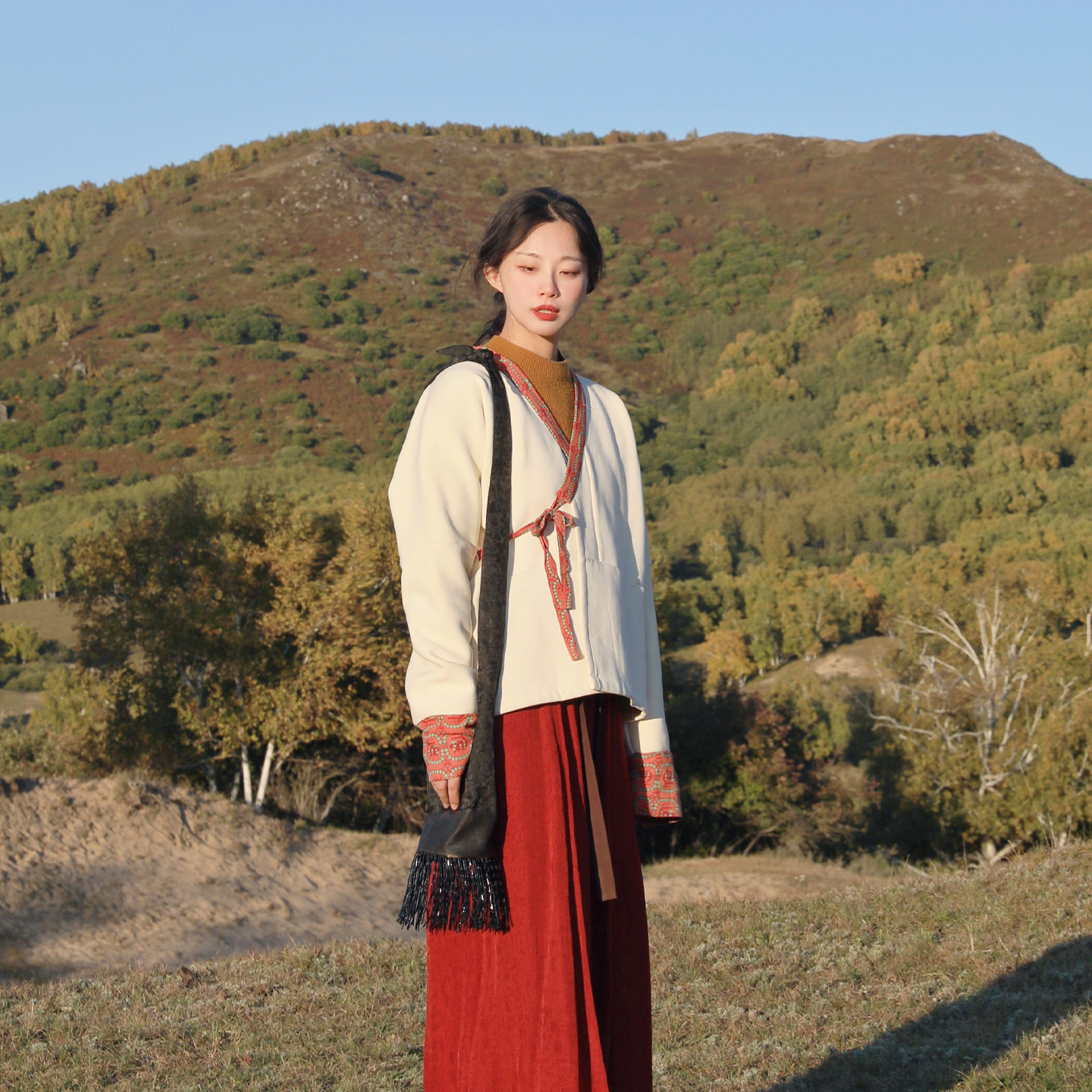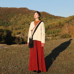 谜阿凰 交领白色汉服内搭女秋冬保暖打底上衣原创 昆仑烹雪里衣