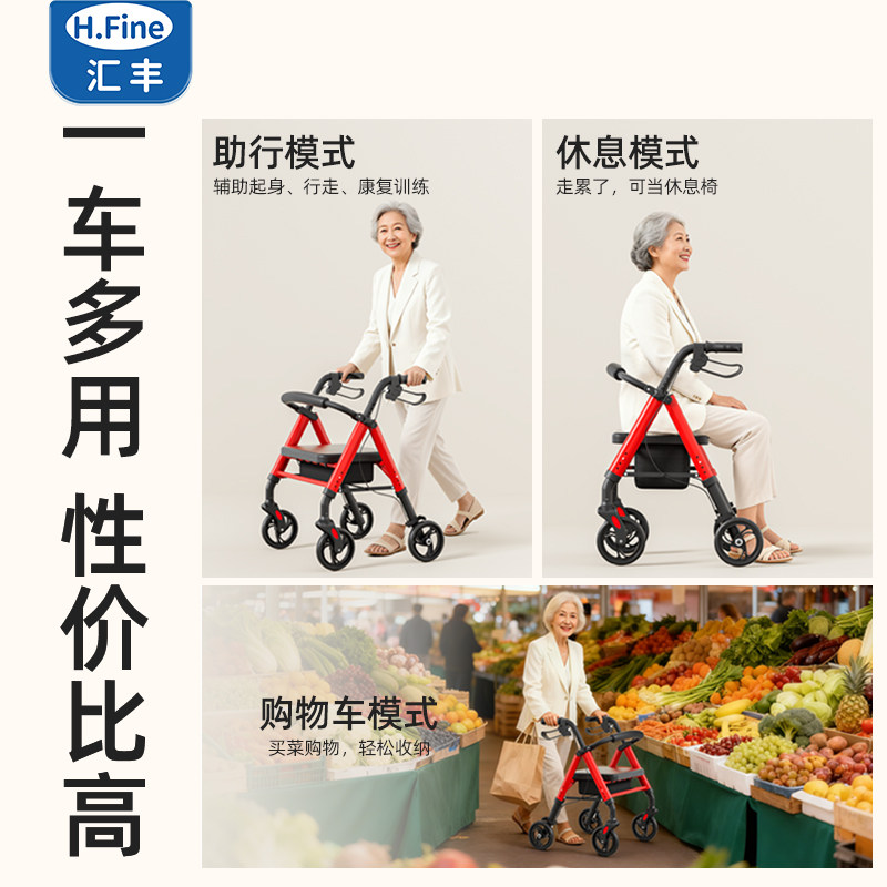 老人行走助行器辅助康复走路可推可坐助步扶手架老年人代步车手推