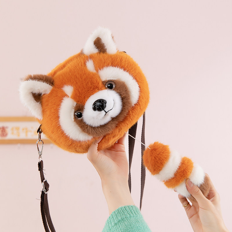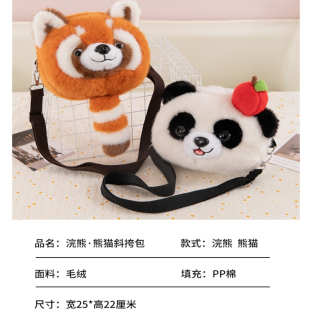 熊猫包包幼儿园卡通斜挎包浣熊男女单肩包儿童百搭毛毛零钱小背包
