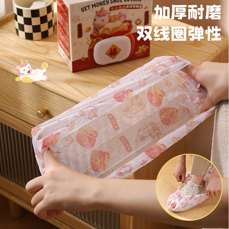 罩室内家用待客 套可洗耐磨成人脚套鞋 一次性鞋 套无纺布加厚印花鞋